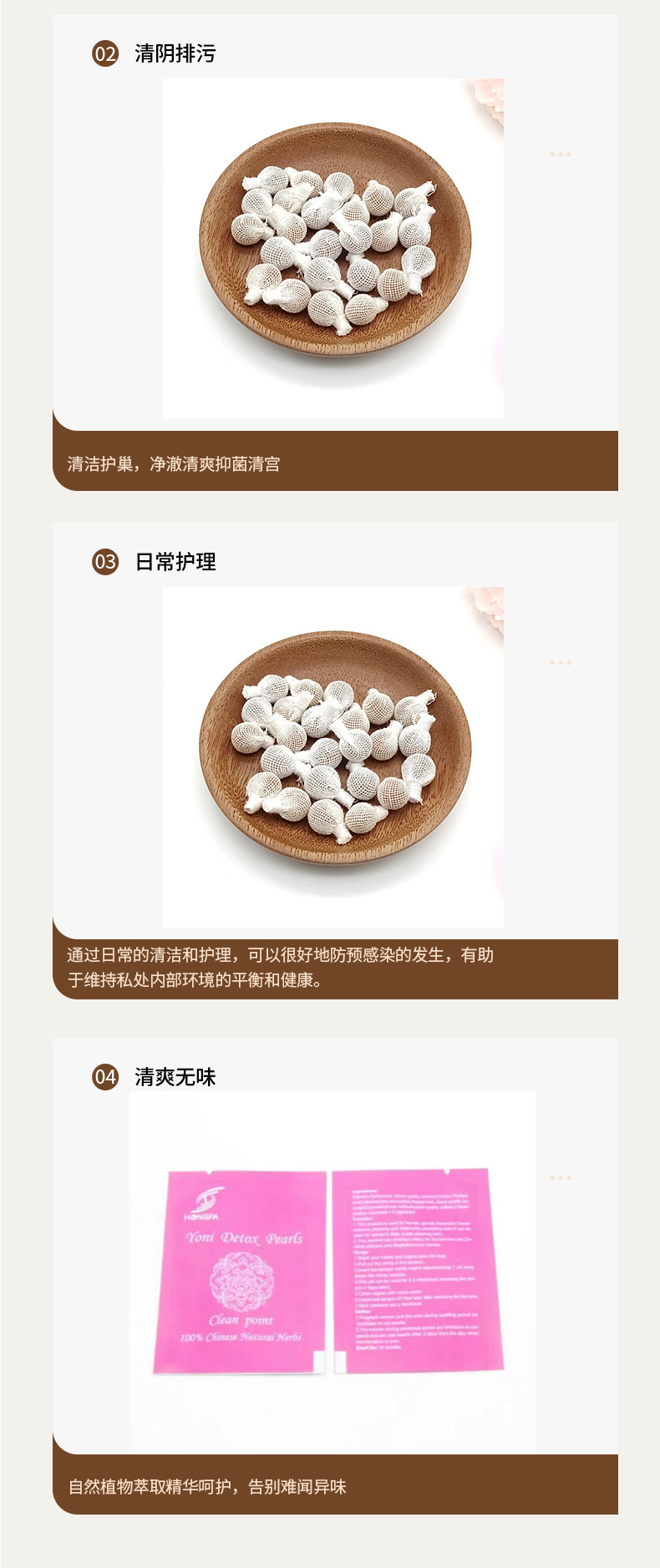 Поставка детокс-жемчужин для интимной гигиены, таблеток для очищения матки, травяных антибактериальных таблеток для экспорта и трансграничной торговли.