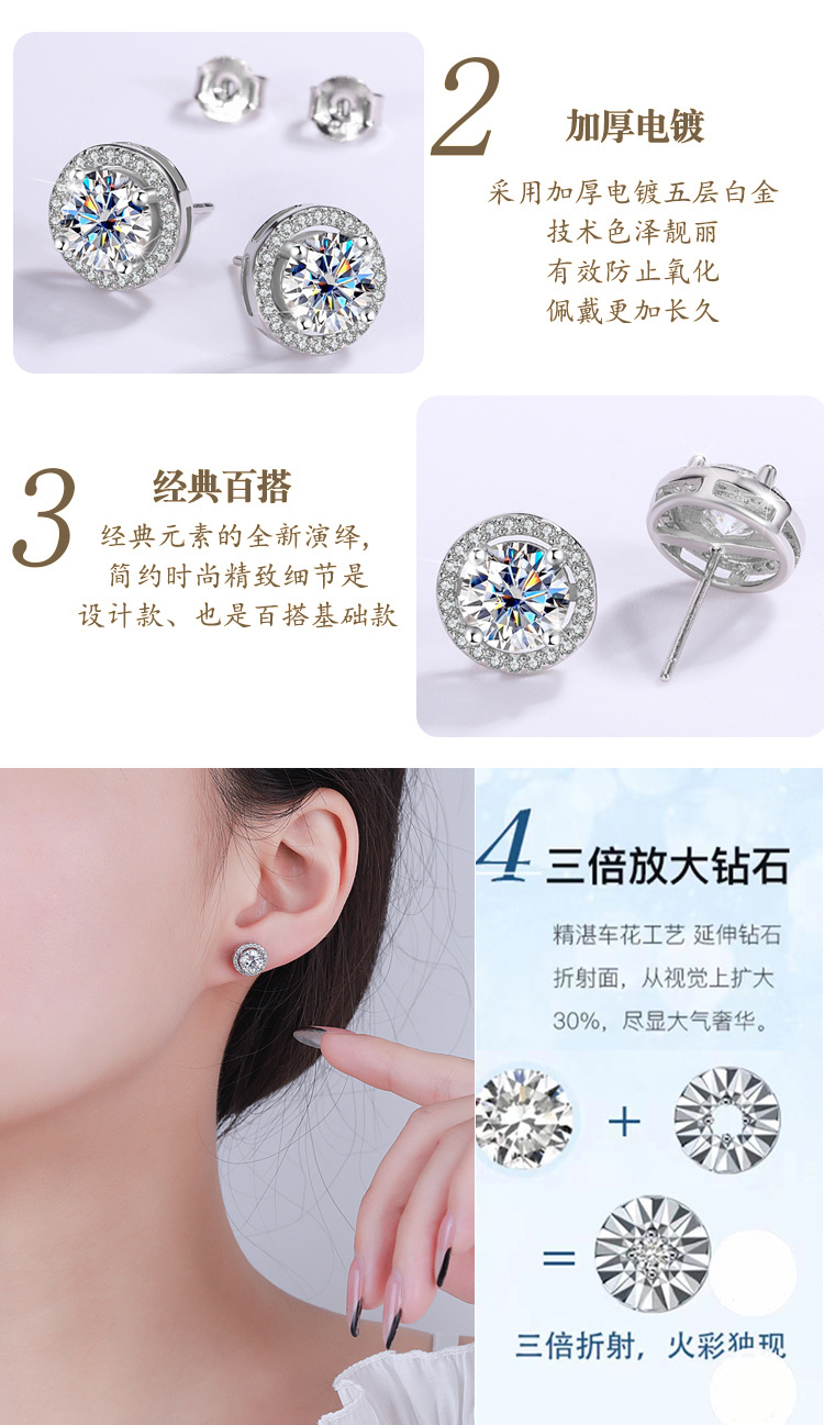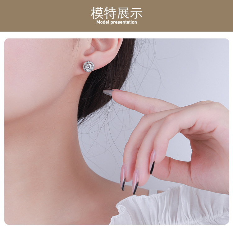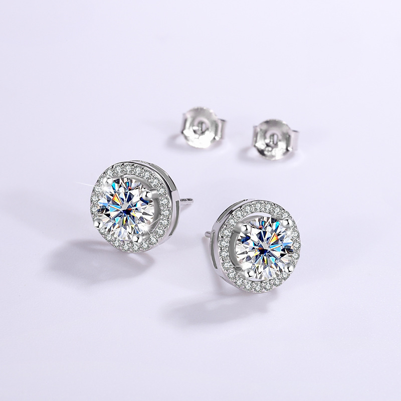 S925 серебряные муассанитовые 1-каратные серьги женские круглые серьги-сумки темперамент Простые Свадебные украшения для ушей живые поставки