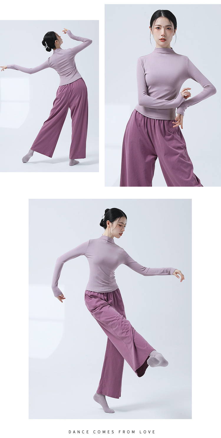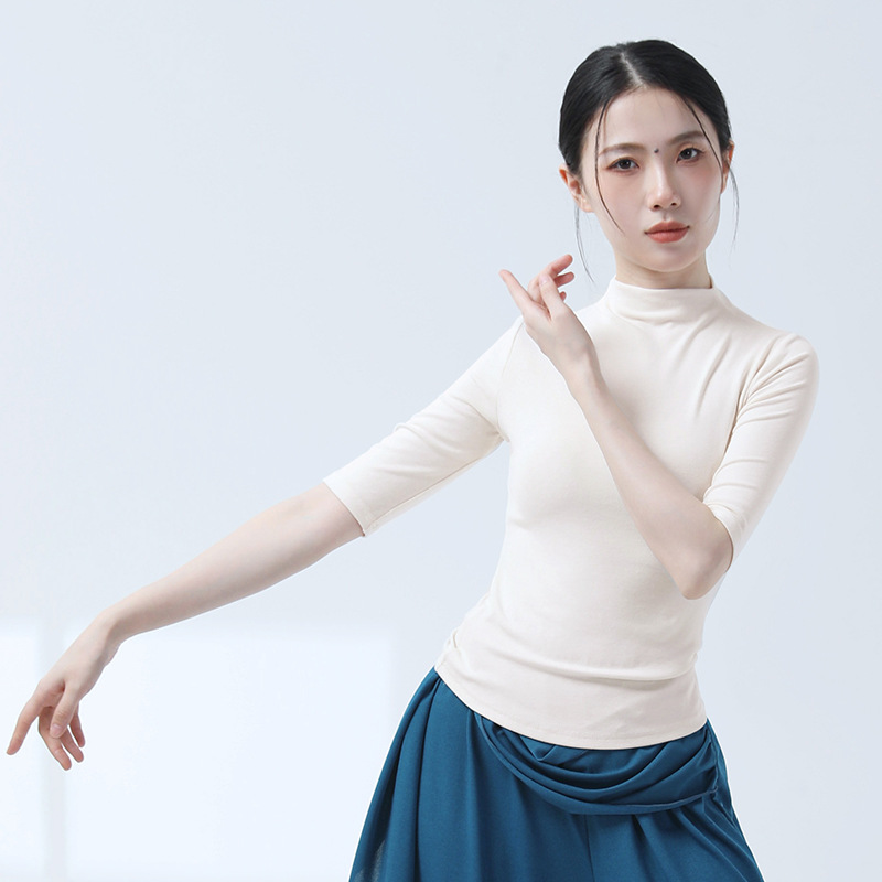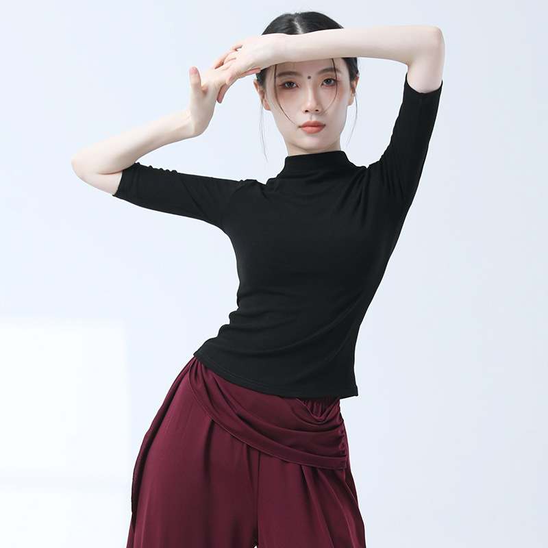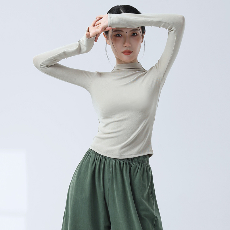 Современная классическая танцевальная тренировка с полувысоким воротником с длинными рукавами