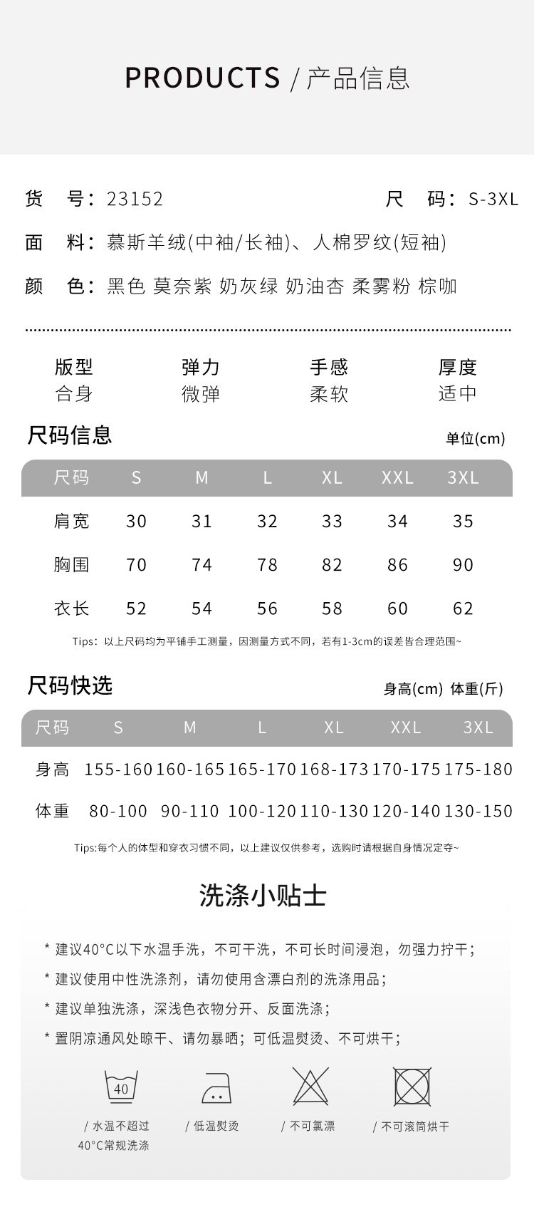 Фиолетовый с длинным рукавом Моне; Длинные рукава-молочно-серо-зеленый; Длинный рукав-кремовый абрикос; Мягкий туманный порошок с длинными рукавами; Кофейный коричневый с длинным рукавом; Длинный рукав — черный; Средние рукава-Моне фиолетовый; Средние рукава-молочно-серо-зеленый; Средний рукав-кремовый абрикос; Средний рукав-мягкая матовая пудра; Чжунсиу-коричневый кофе; Средние рукава - черные.; Короткие рукава-белый; Короткий рукав-кардамон зеленый; Короткие рукава-темно-зеленый; Короткие рукава-серо-синий; Короткие рукава - черный; Короткий рукав-кофе; Короткие рукава - Молочный Абрикос; Короткие рукава-Сакура розовый