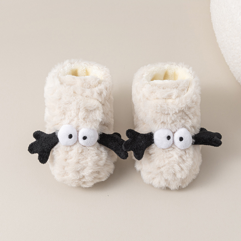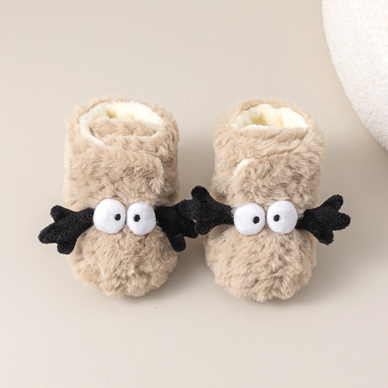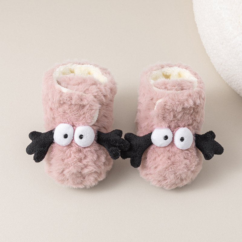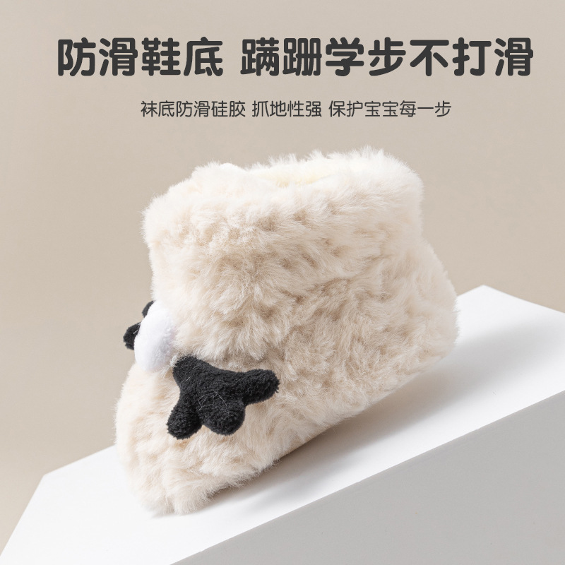 Зимние утолщенные теплые детские ботинки для первых шагов, обувь для новорожденных, мягкая подошва для малышей, нескользящие мультяшные ботинки и носки.