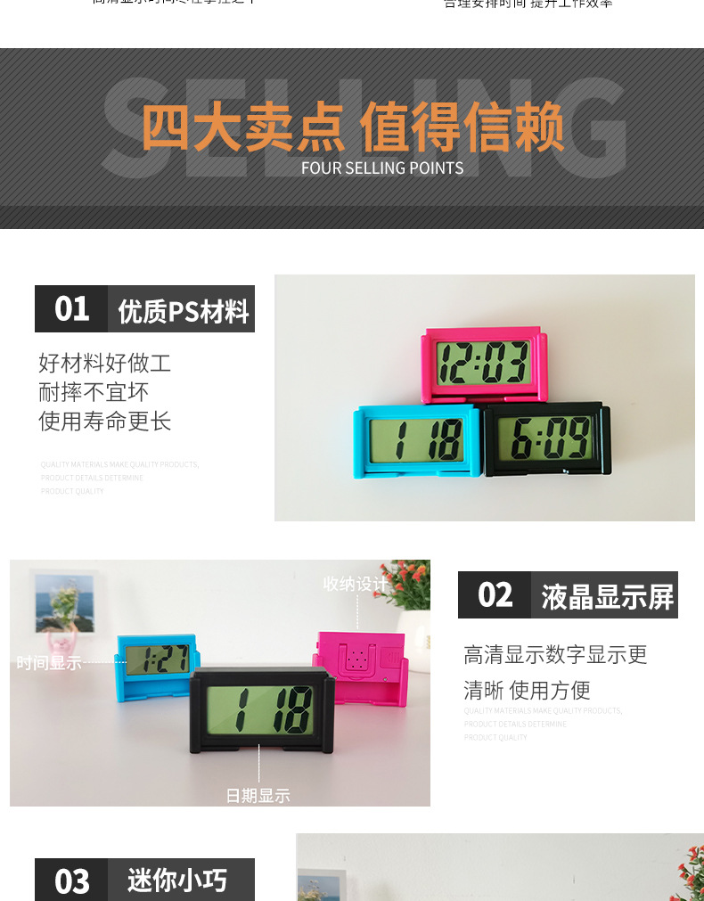 Фабрика Прямые Портативные Простые часы квадратный угол Студент Дети бесшумные настольные часы электронные автомобильные часы