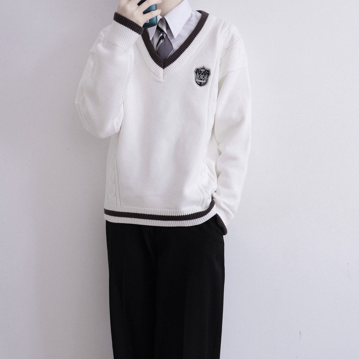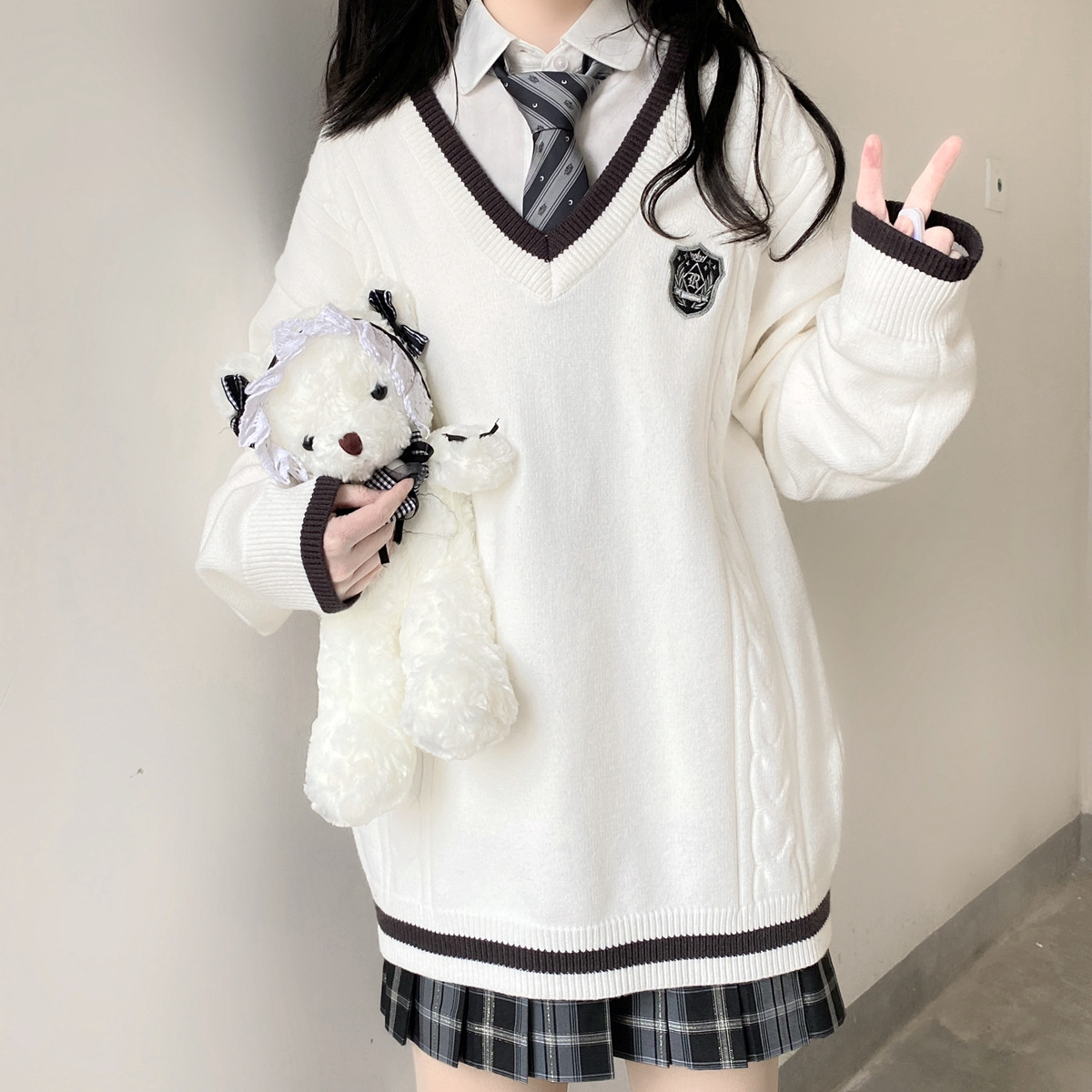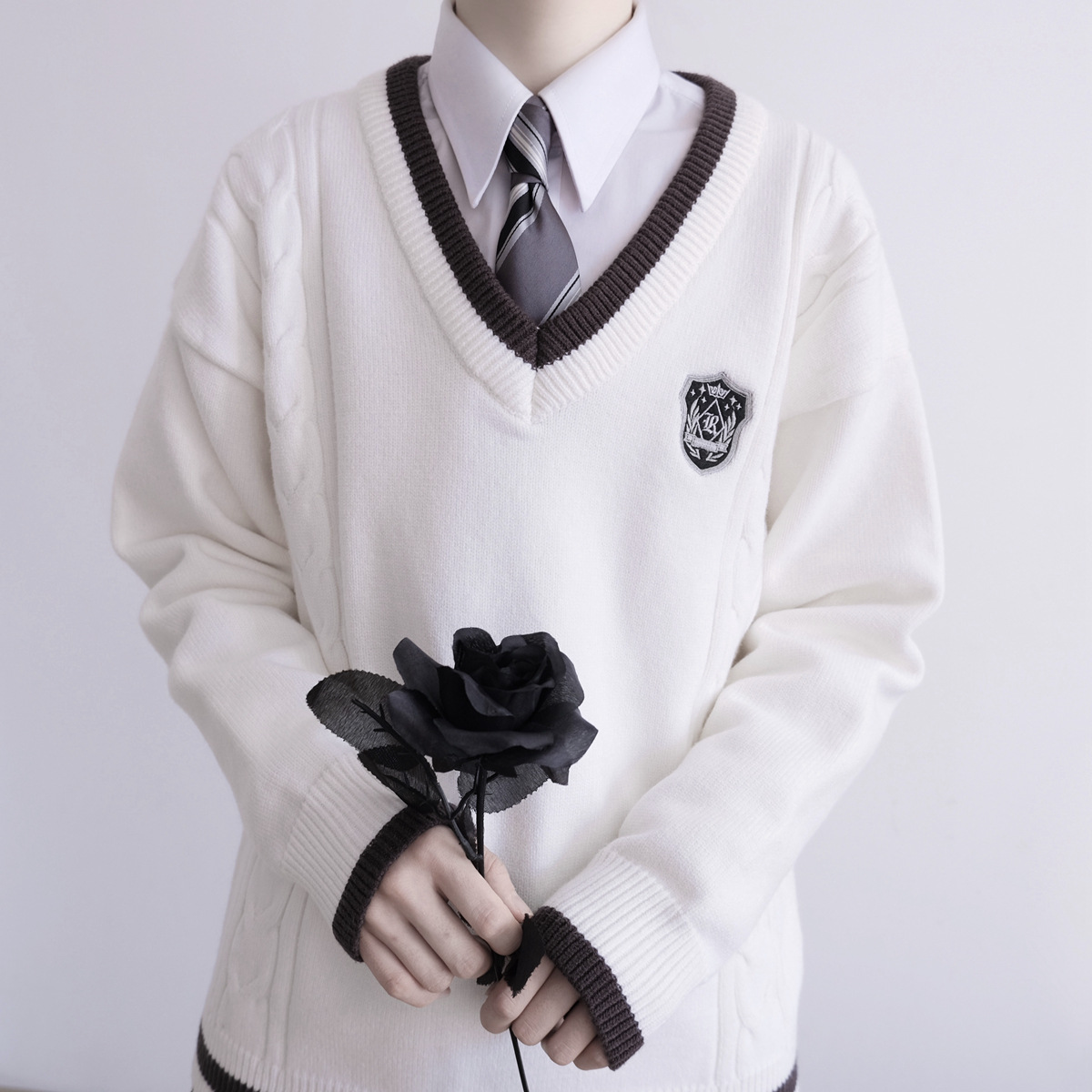 Пуловер Century JK Uniform, свободная вязаная рубашка с V-образным вырезом и вышивкой, свитер для мужчин и женщин, топ для пар