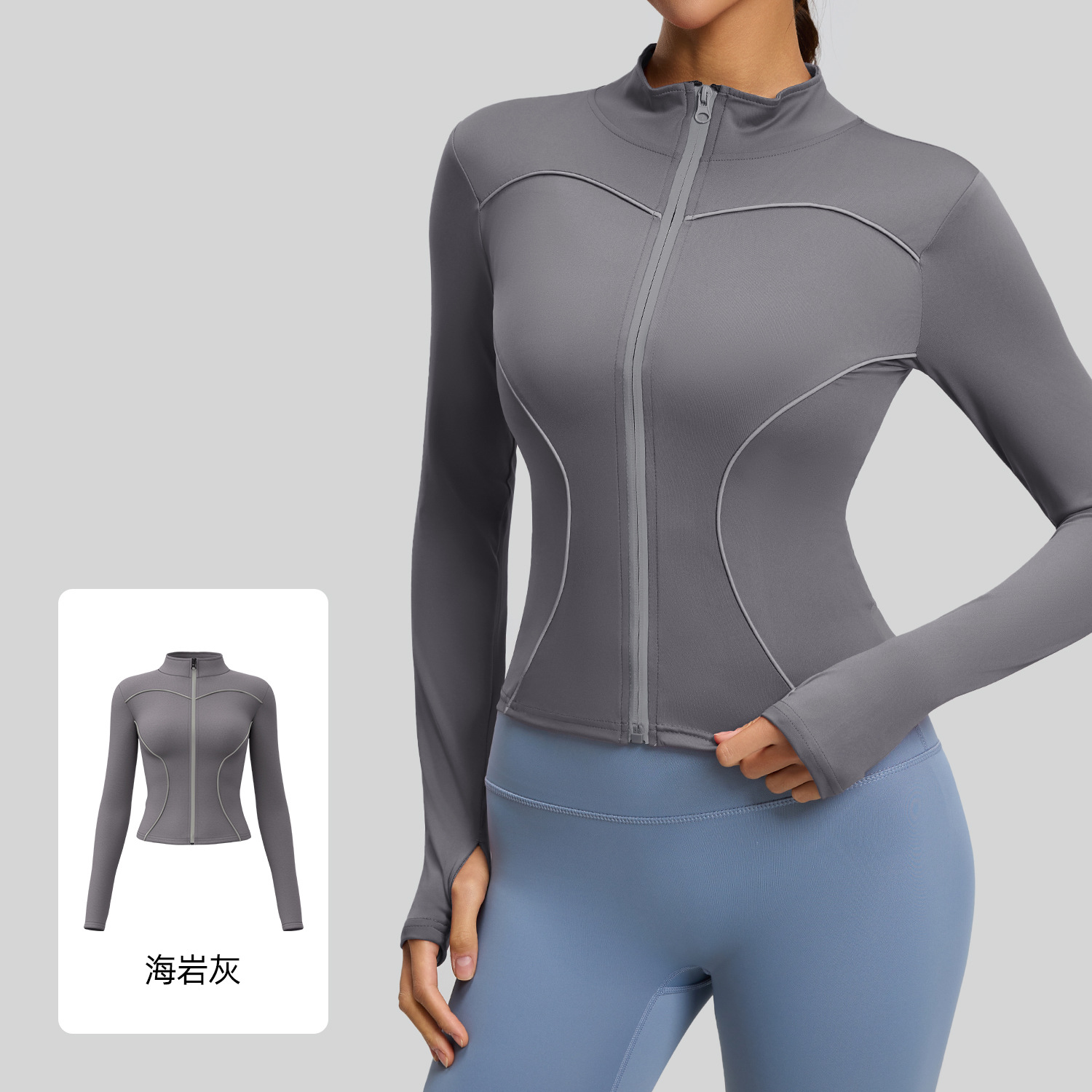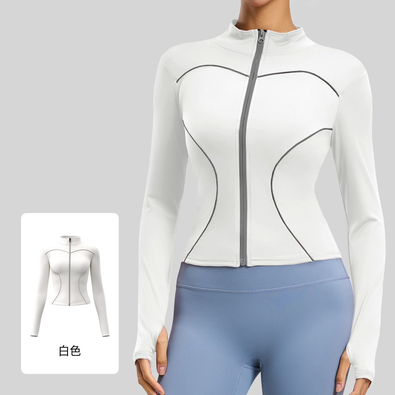 Новая светоотражающая облегающая спортивная куртка для йоги с длинными рукавами персикового цвета от Juyitang