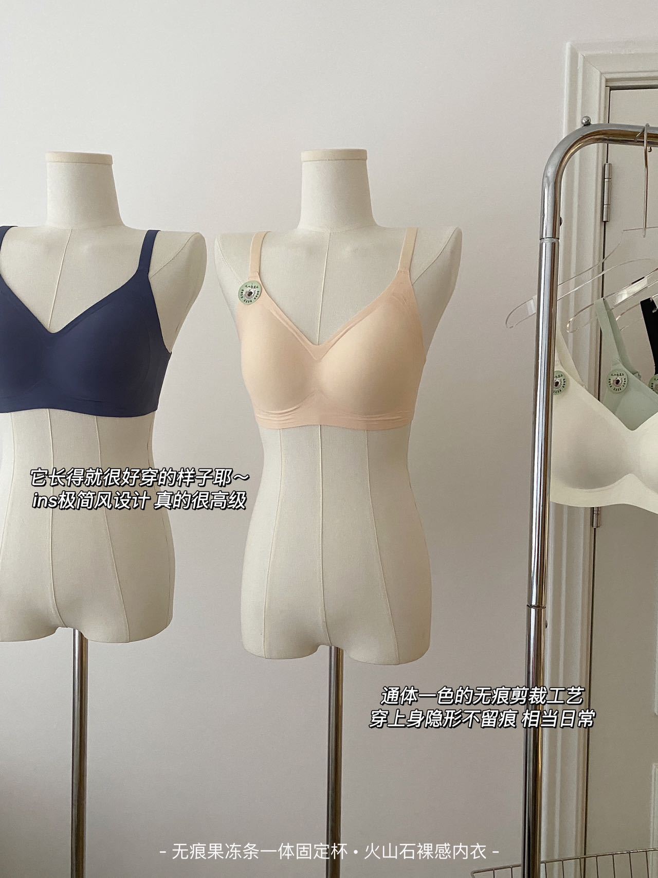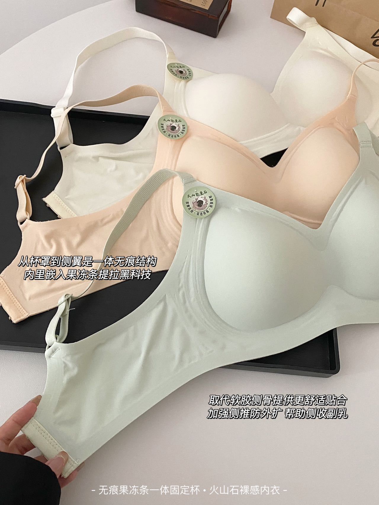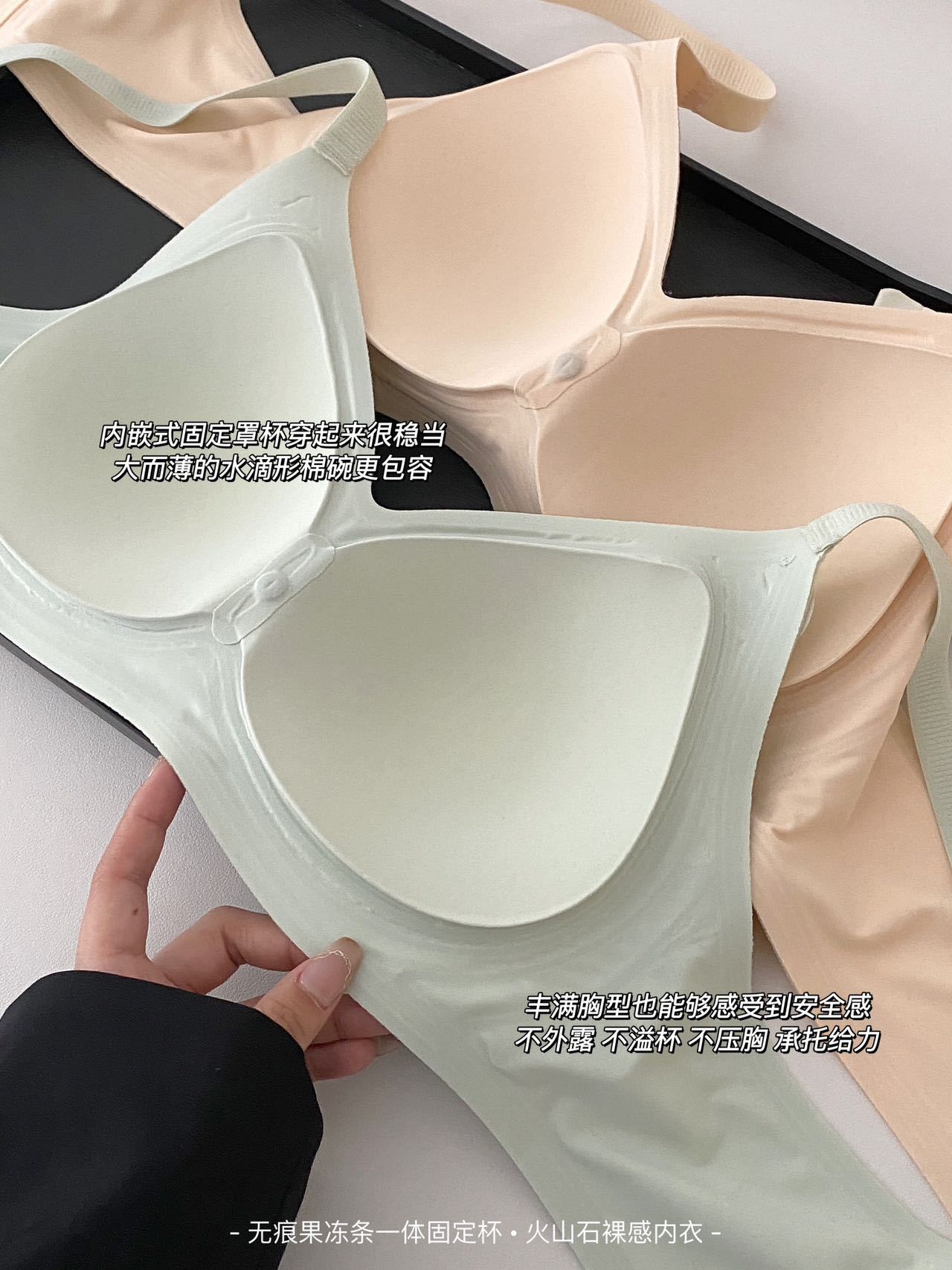 Бесшовное нижнее белье больших размеров в желейную полоску, женский бюстгальтер с фиксированной чашкой, пуш-ап, тонкая большая грудь, маленький бюстгальтер из вулканического камня