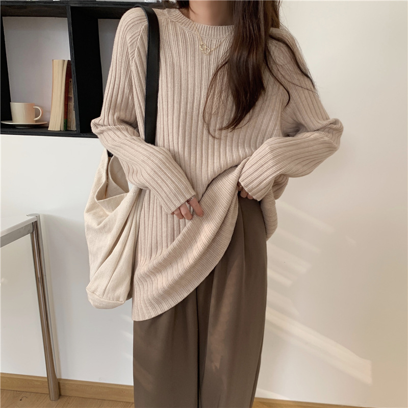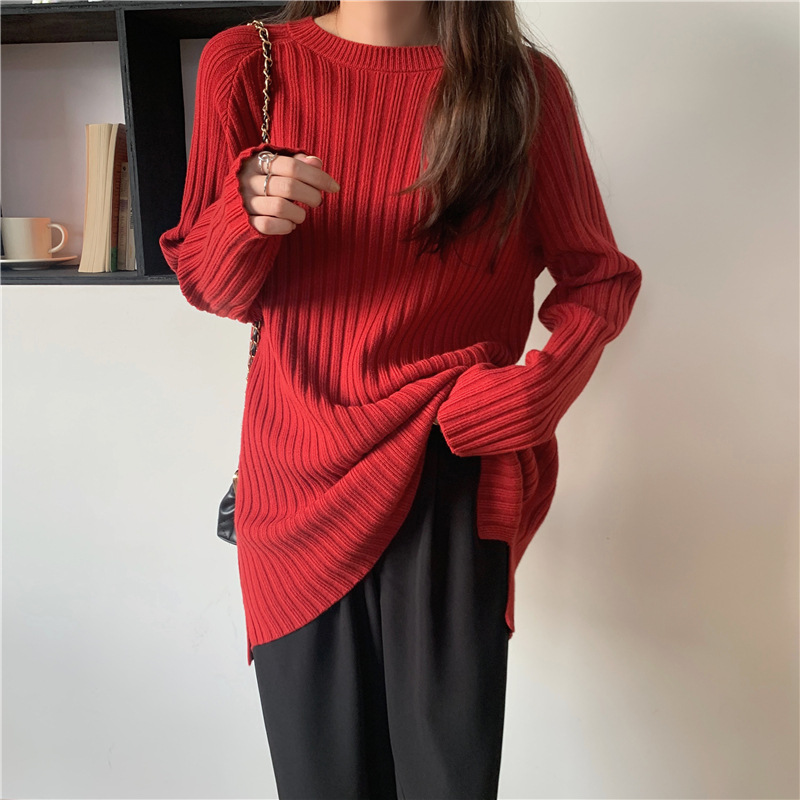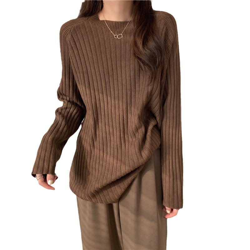 2023 новый осенне-зимний женский ленивый свитер средней длины вязаный свитер черный базовый свитер Топ из шерсти