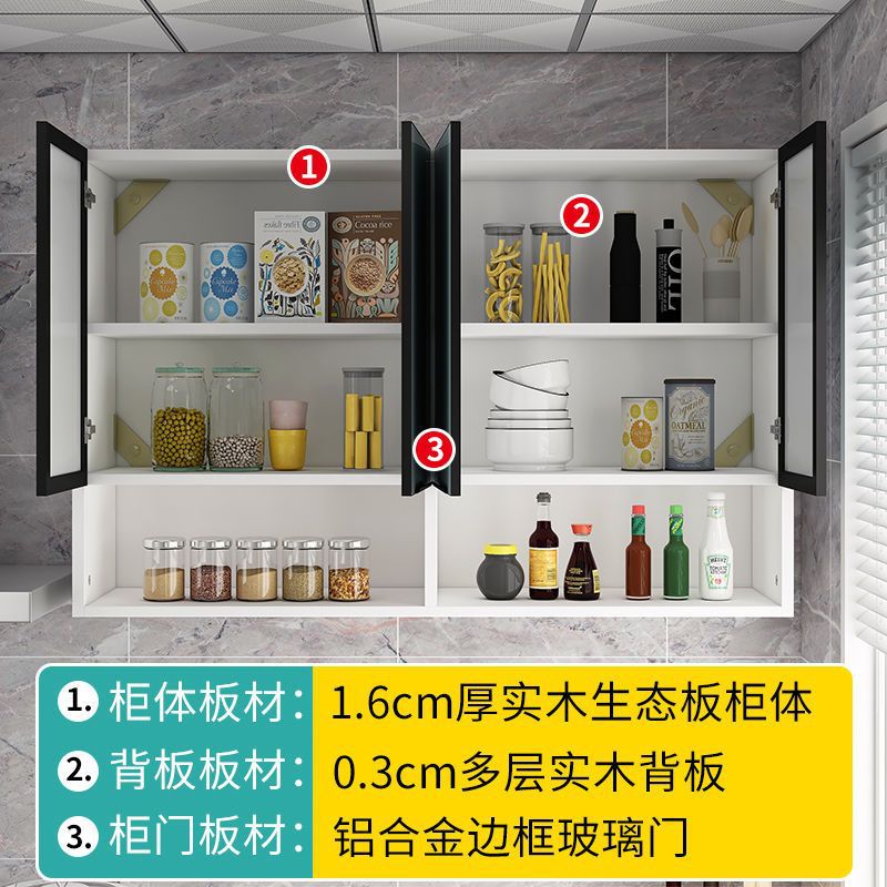 Подвесной кухонный шкаф из цельного дерева Настенный шкаф для хранения Настенный Балконный шкаф для ванной комнаты Стеклянный шкаф из алюминиевого сплава