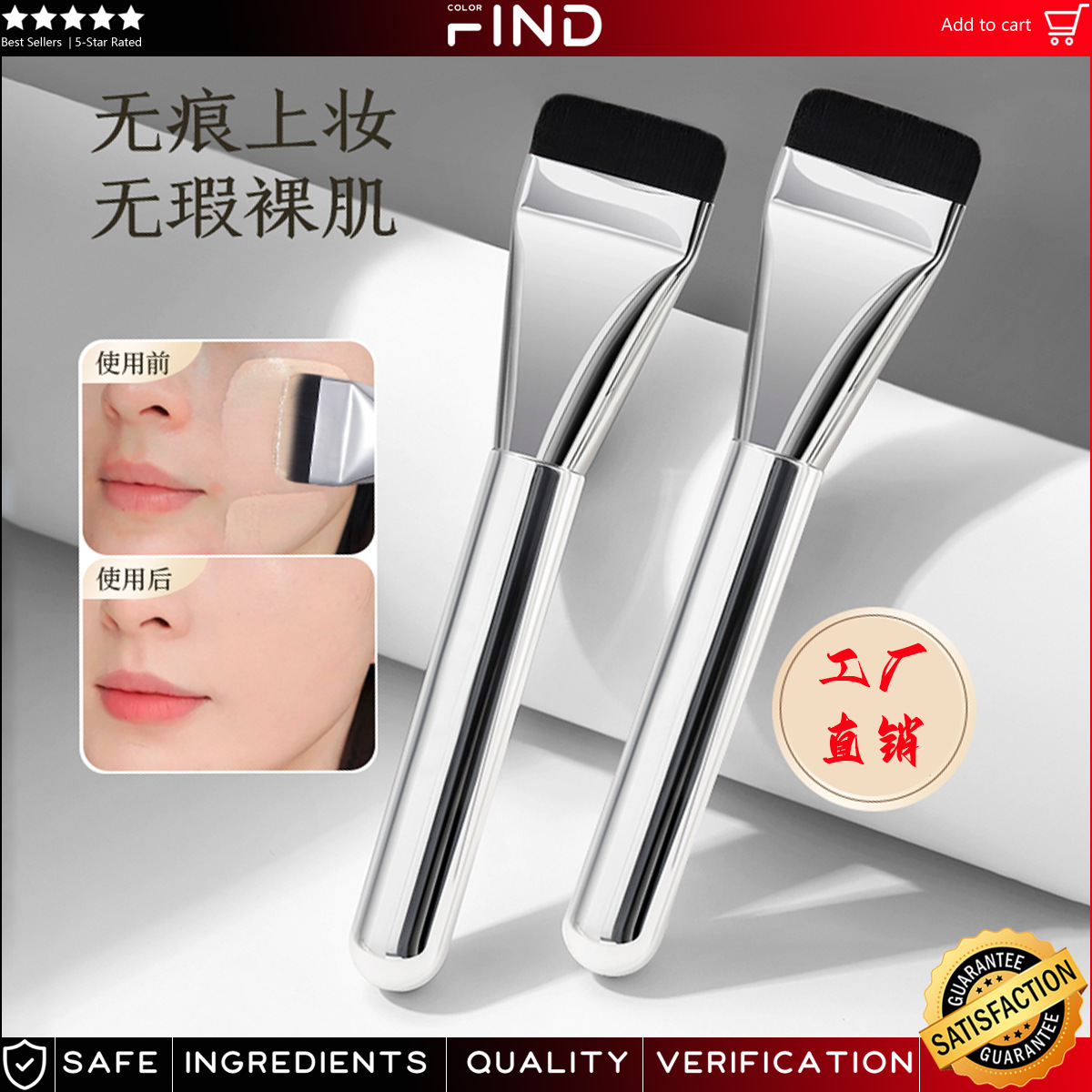 FINDCOLOR одинарная серебряная кисть для тонального крема с плоской головкой мягкие волосы без следов не едят тональный макияж brush-YF23092302