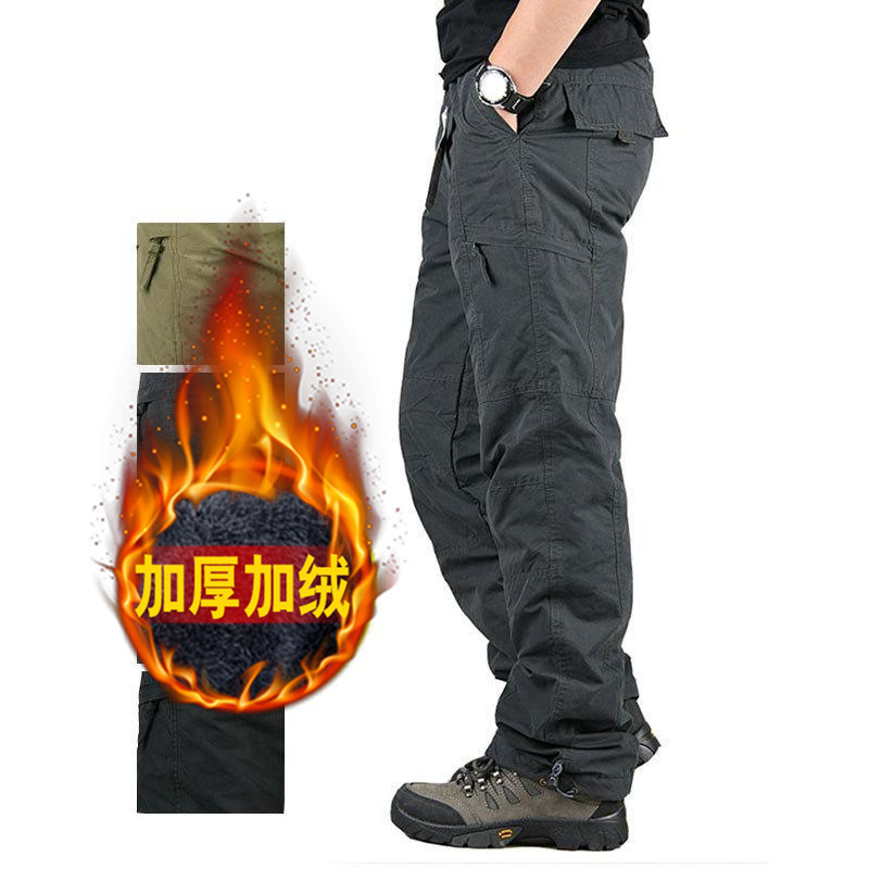 Зимний утепленный комбинезон на флисовой подкладке, мужские уличные теплые мужские хлопковые брюки, прямые повседневные брюки больших размеров с несколькими карманами для мужчин
