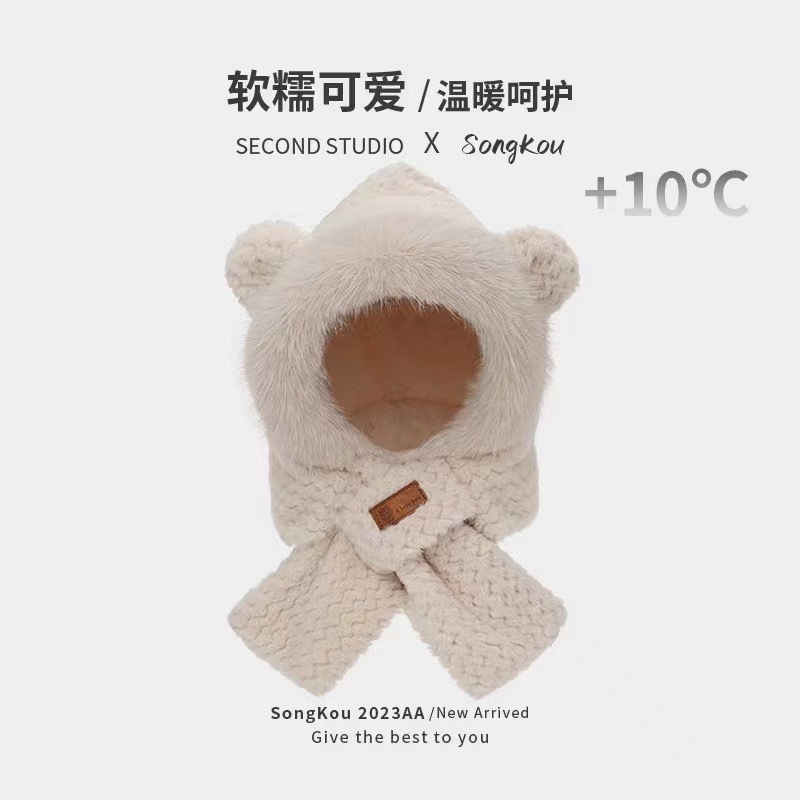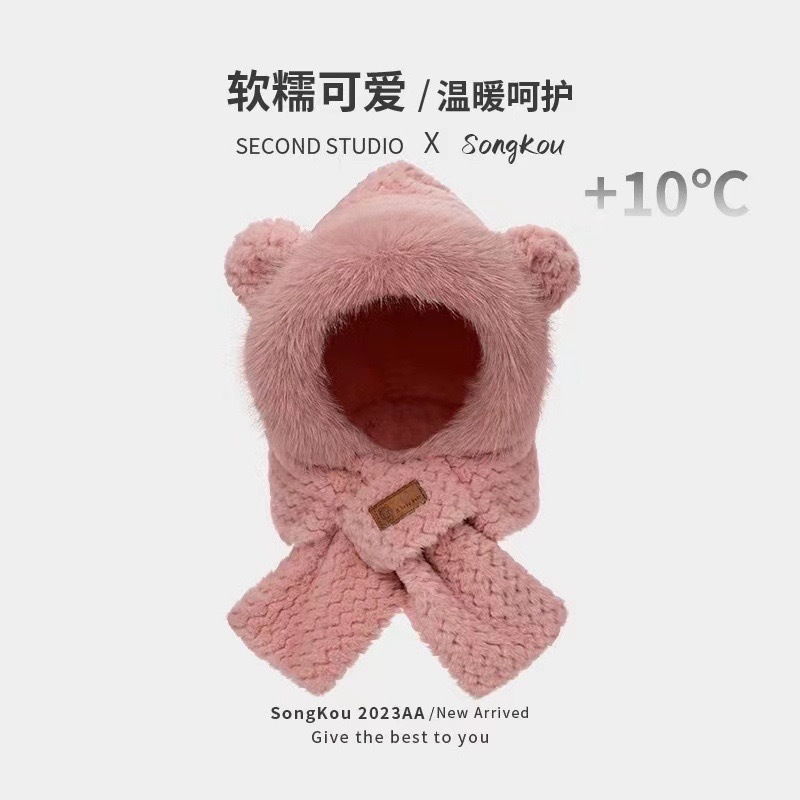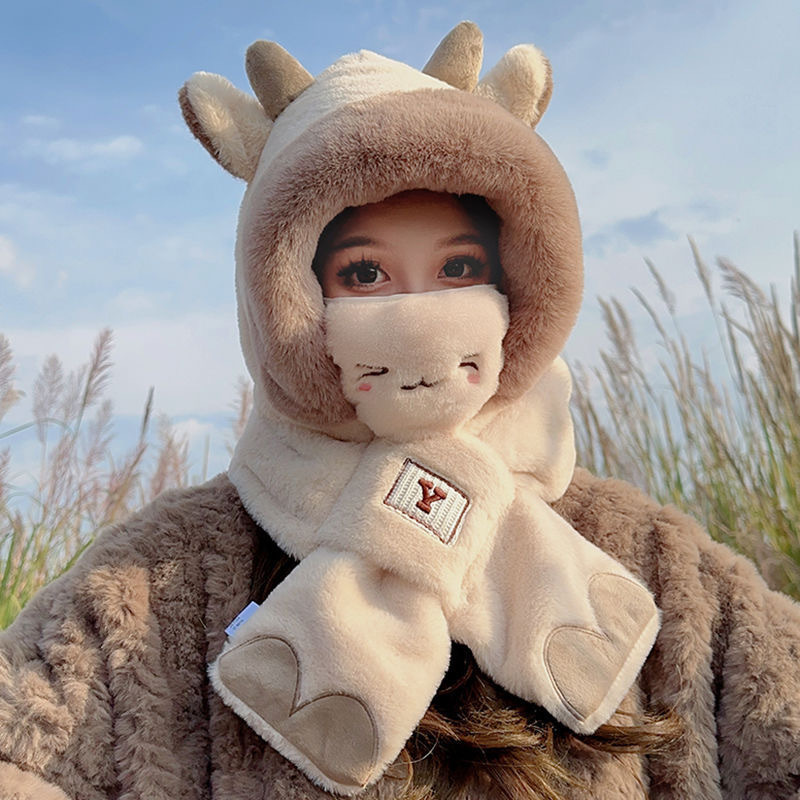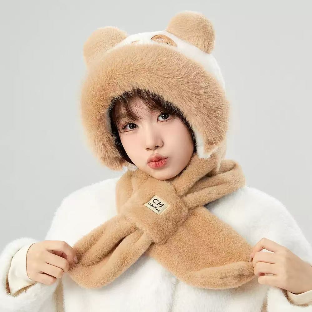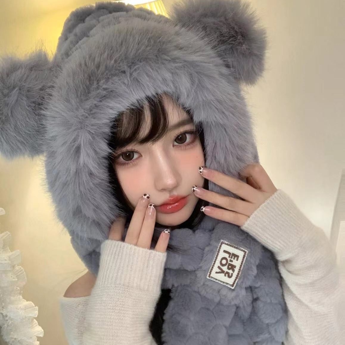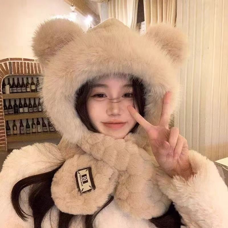Осенние и зимние шапки для женщин, милый плюшевый шарф, утолщенный встроенный воротник-шарф, плюшевая шапка для велоспорта, теплая шапка с защитой для ушей