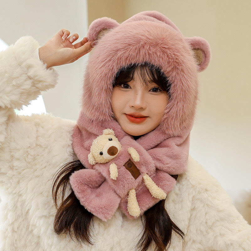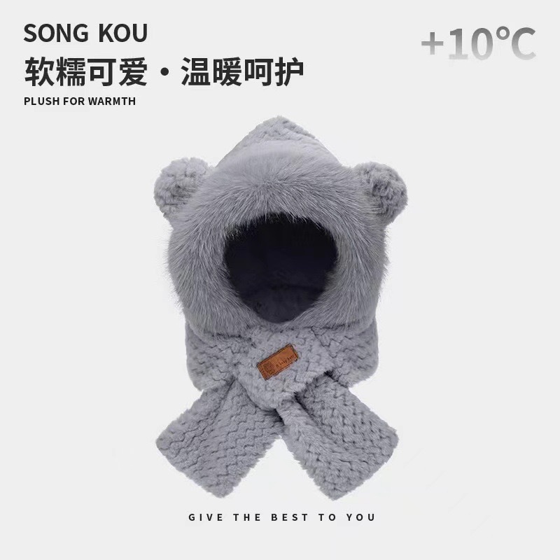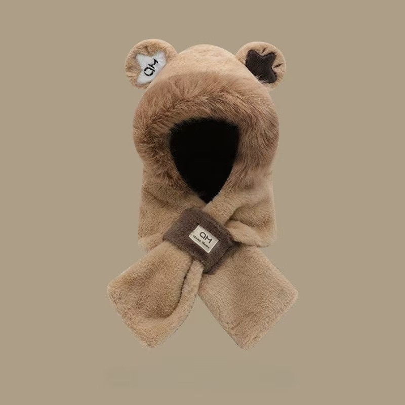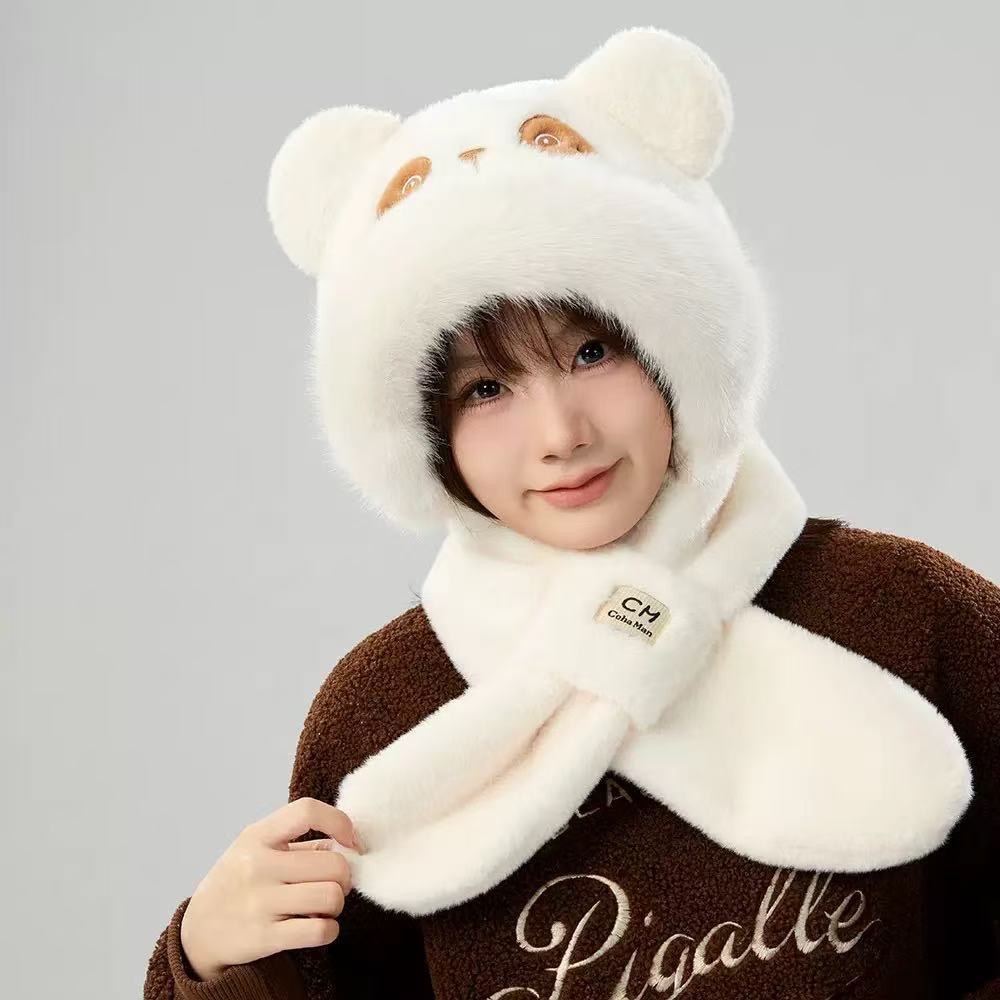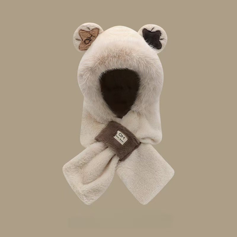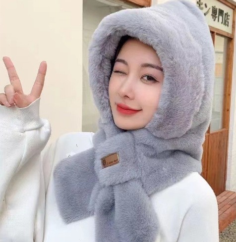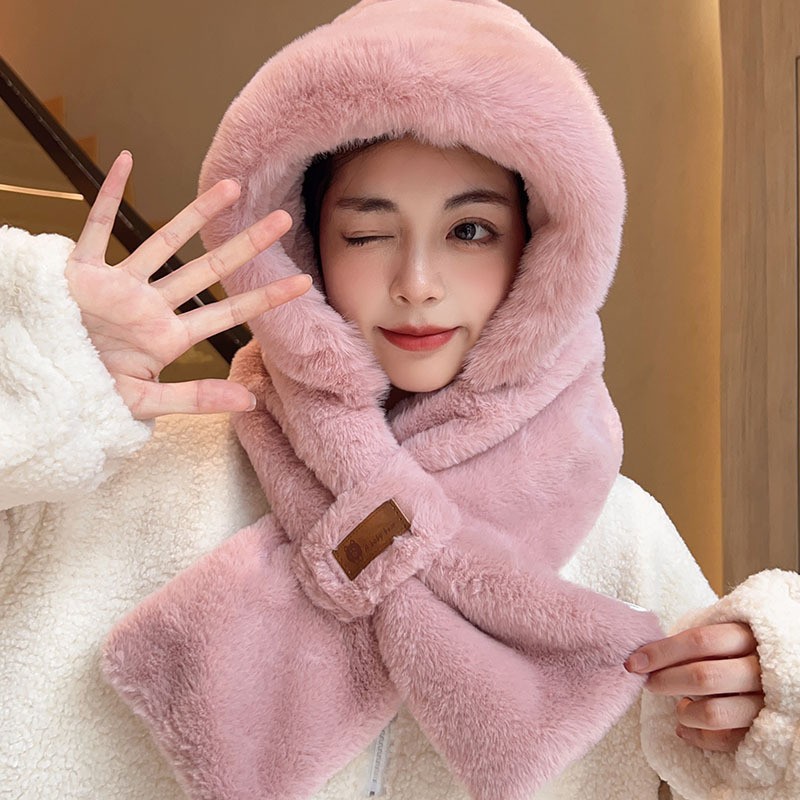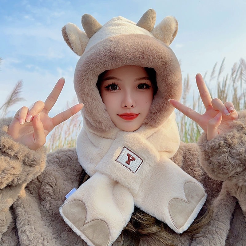 Осенние и зимние шапки для женщин, милый плюшевый шарф, утолщенный встроенный воротник-шарф, плюшевая шапка для велоспорта, теплая шапка с защитой для ушей