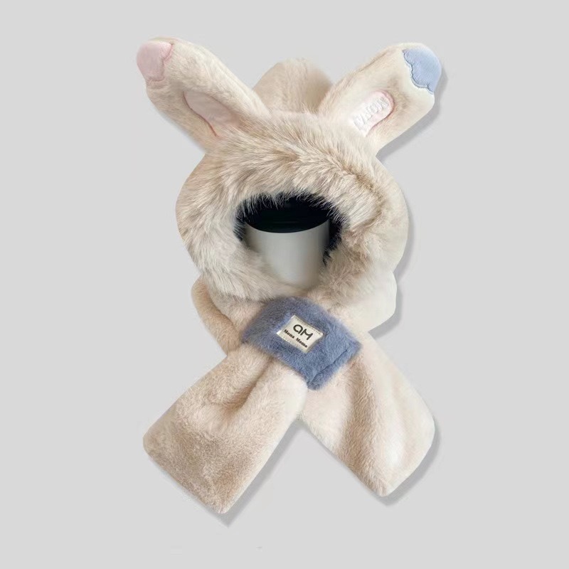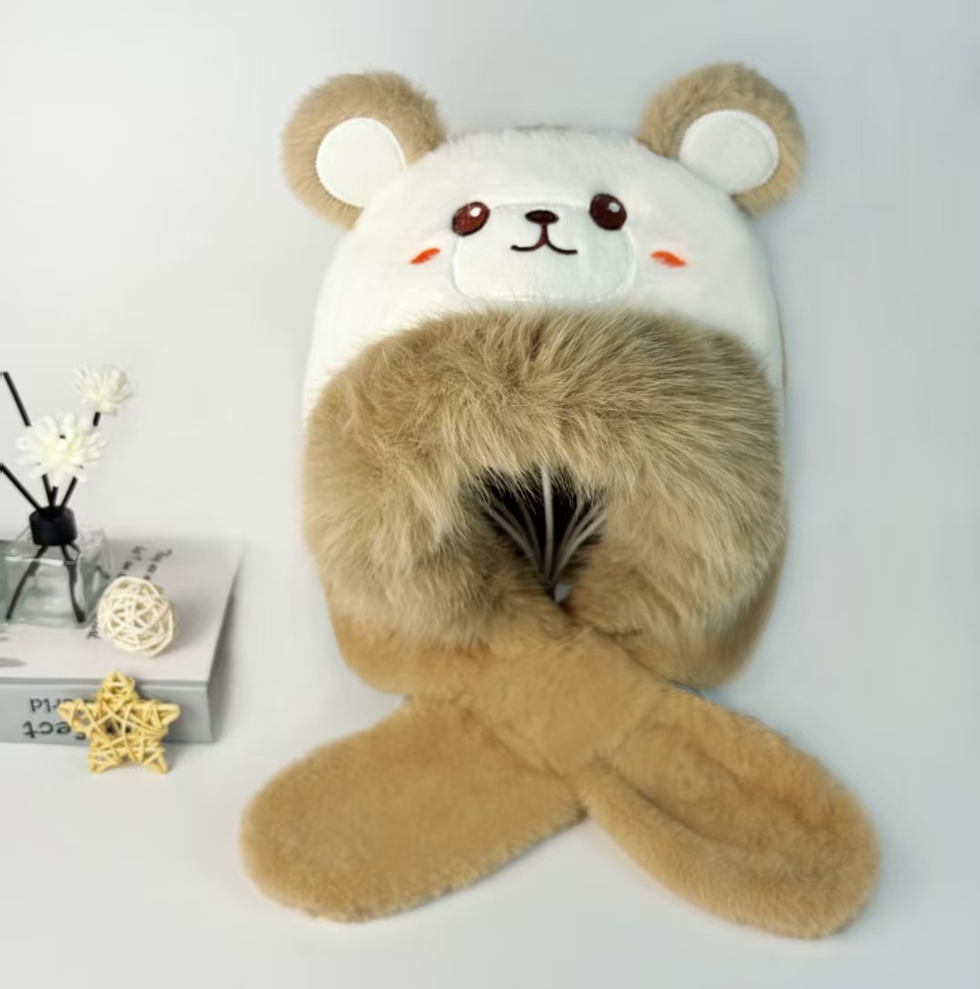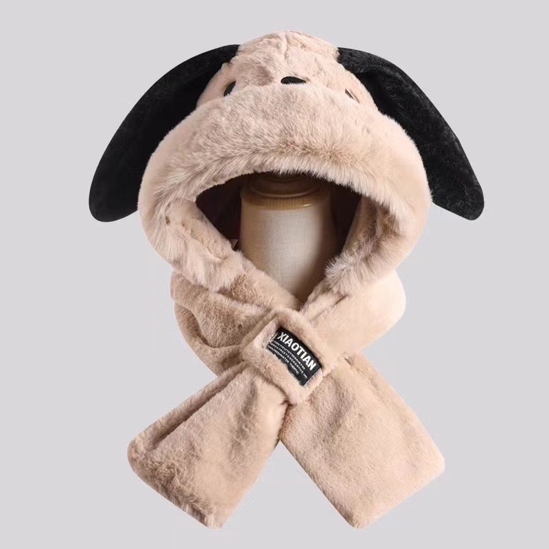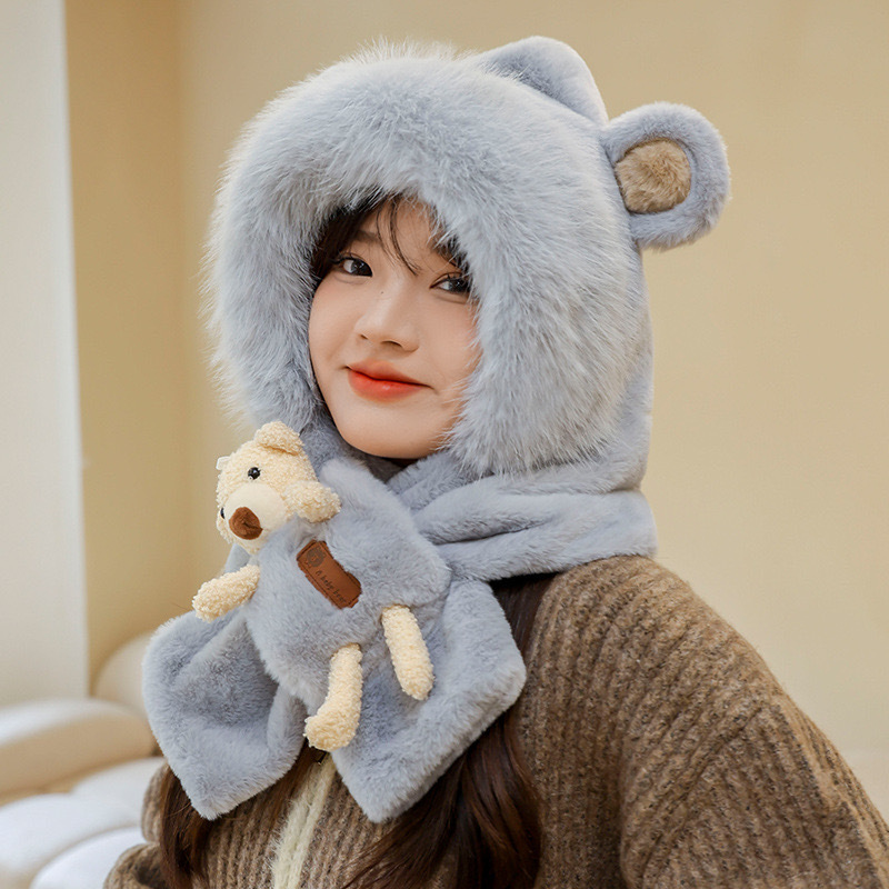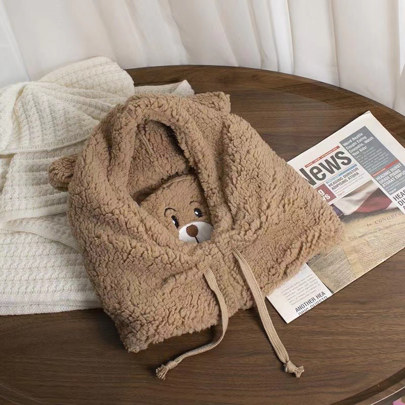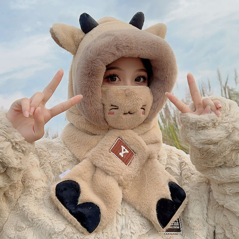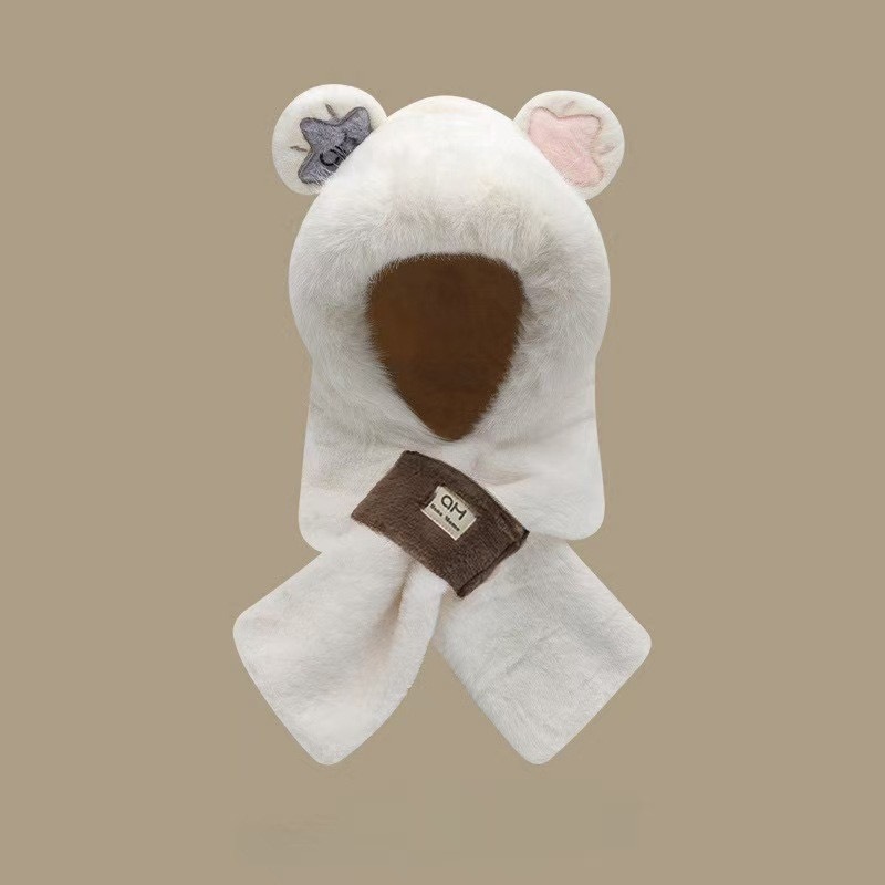 Осенние и зимние шапки для женщин, милый плюшевый шарф, утолщенный встроенный воротник-шарф, плюшевая шапка для велоспорта, теплая шапка с защитой для ушей