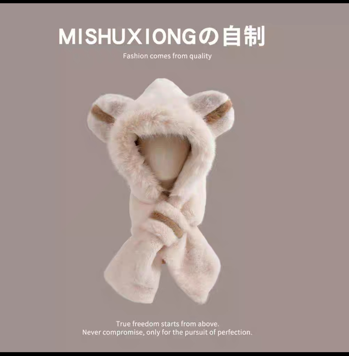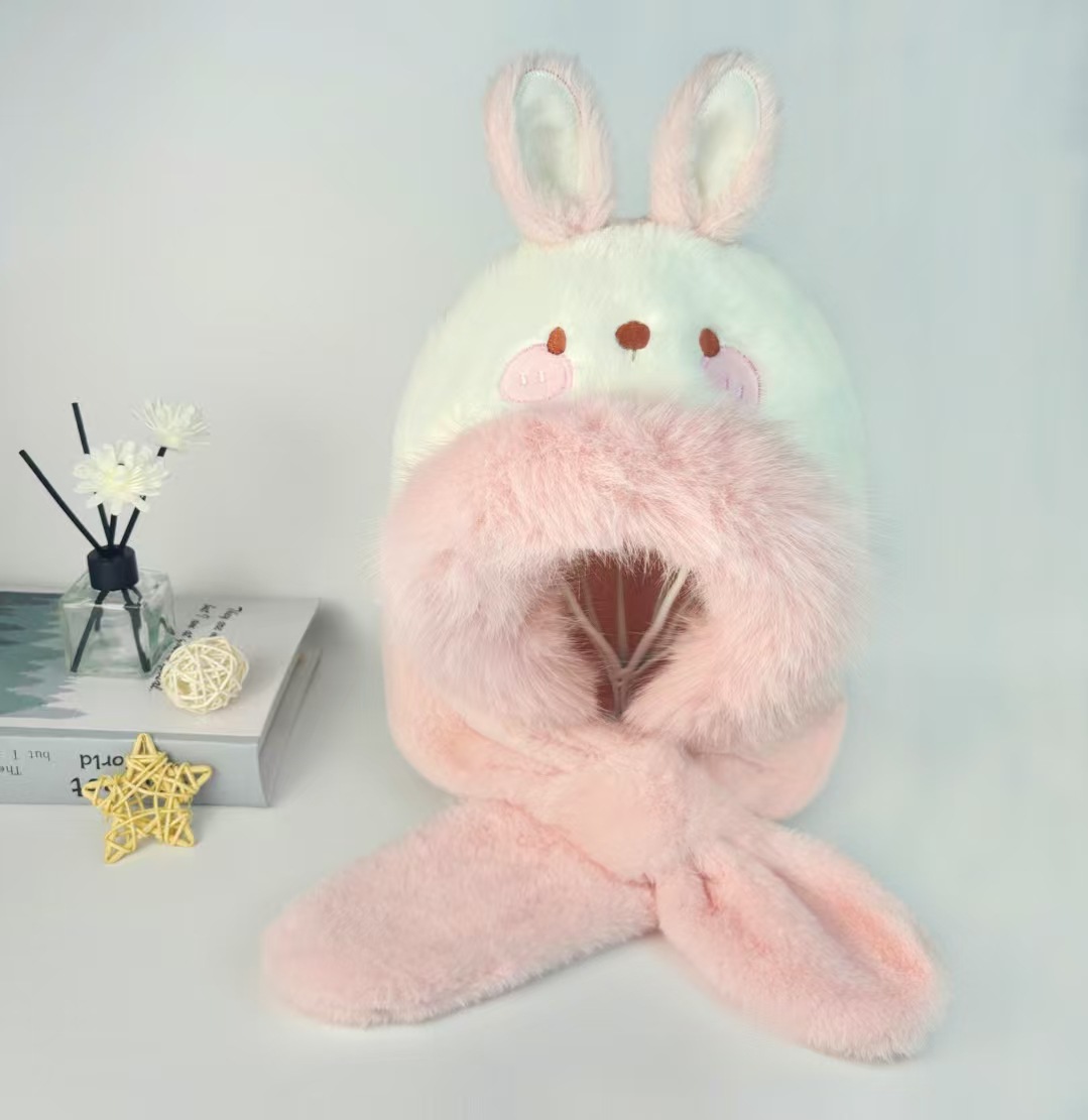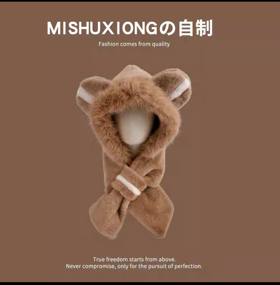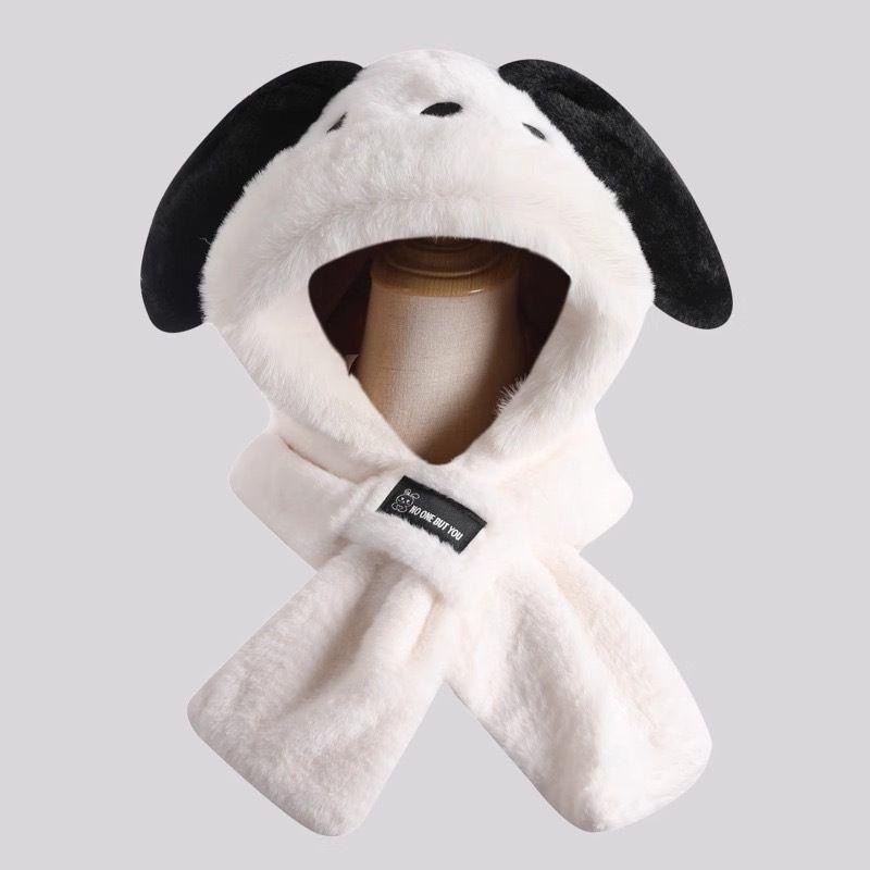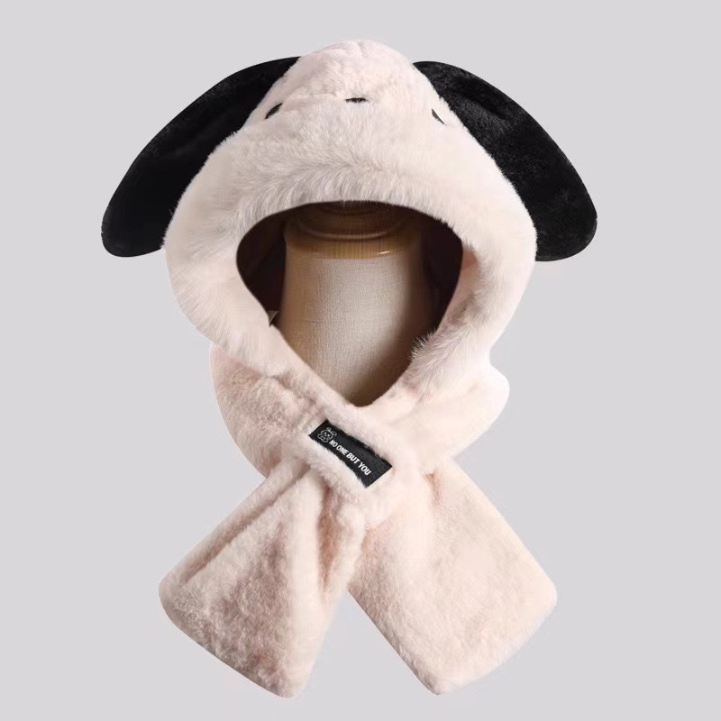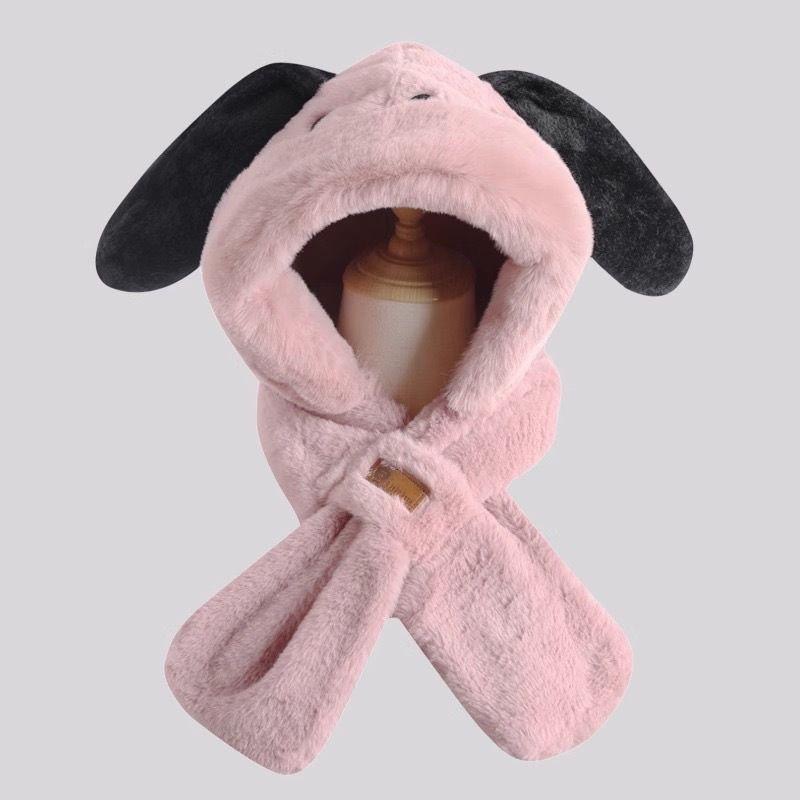 Осенние и зимние шапки для женщин, милый плюшевый шарф, утолщенный встроенный воротник-шарф, плюшевая шапка для велоспорта, теплая шапка с защитой для ушей
