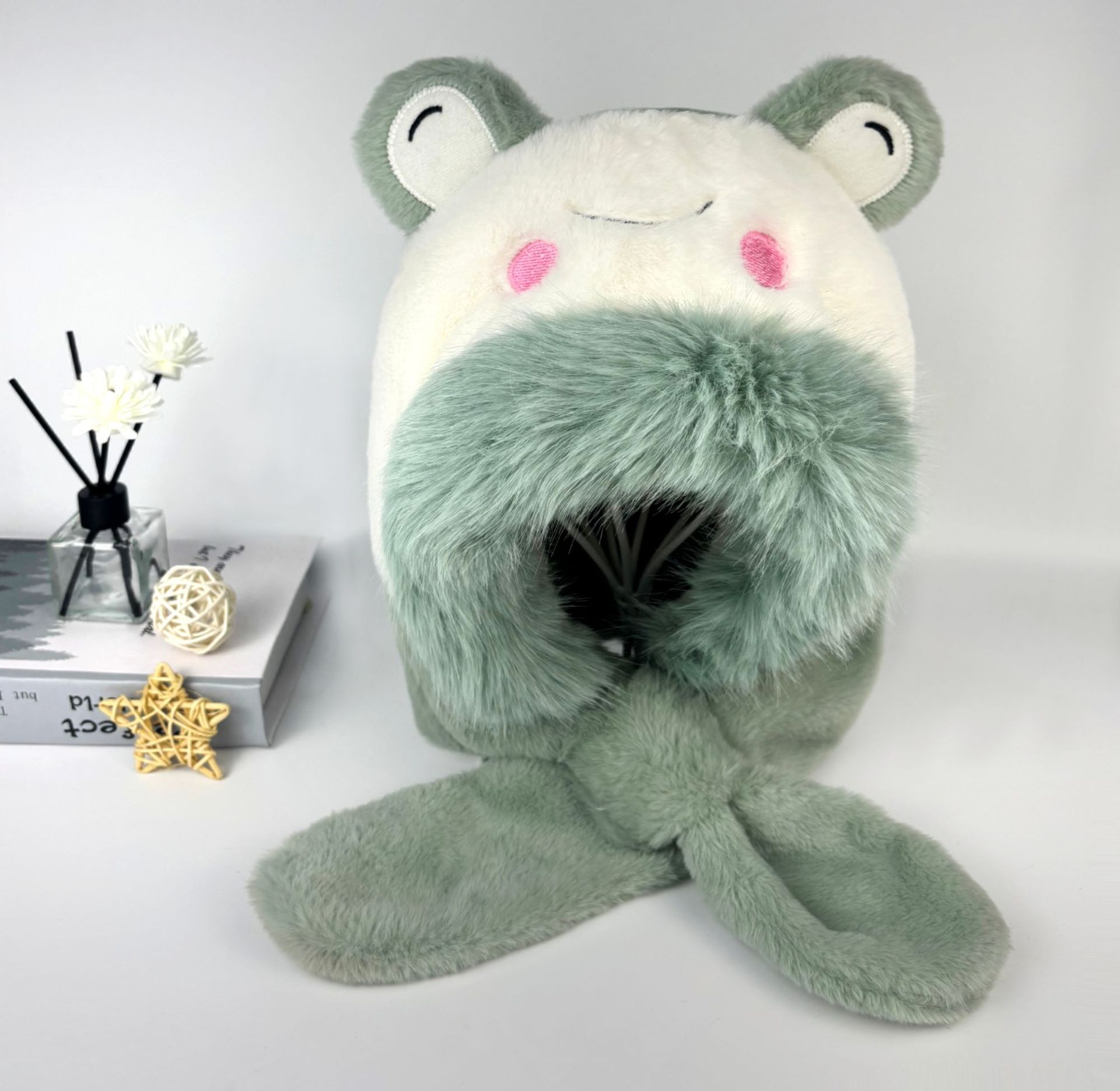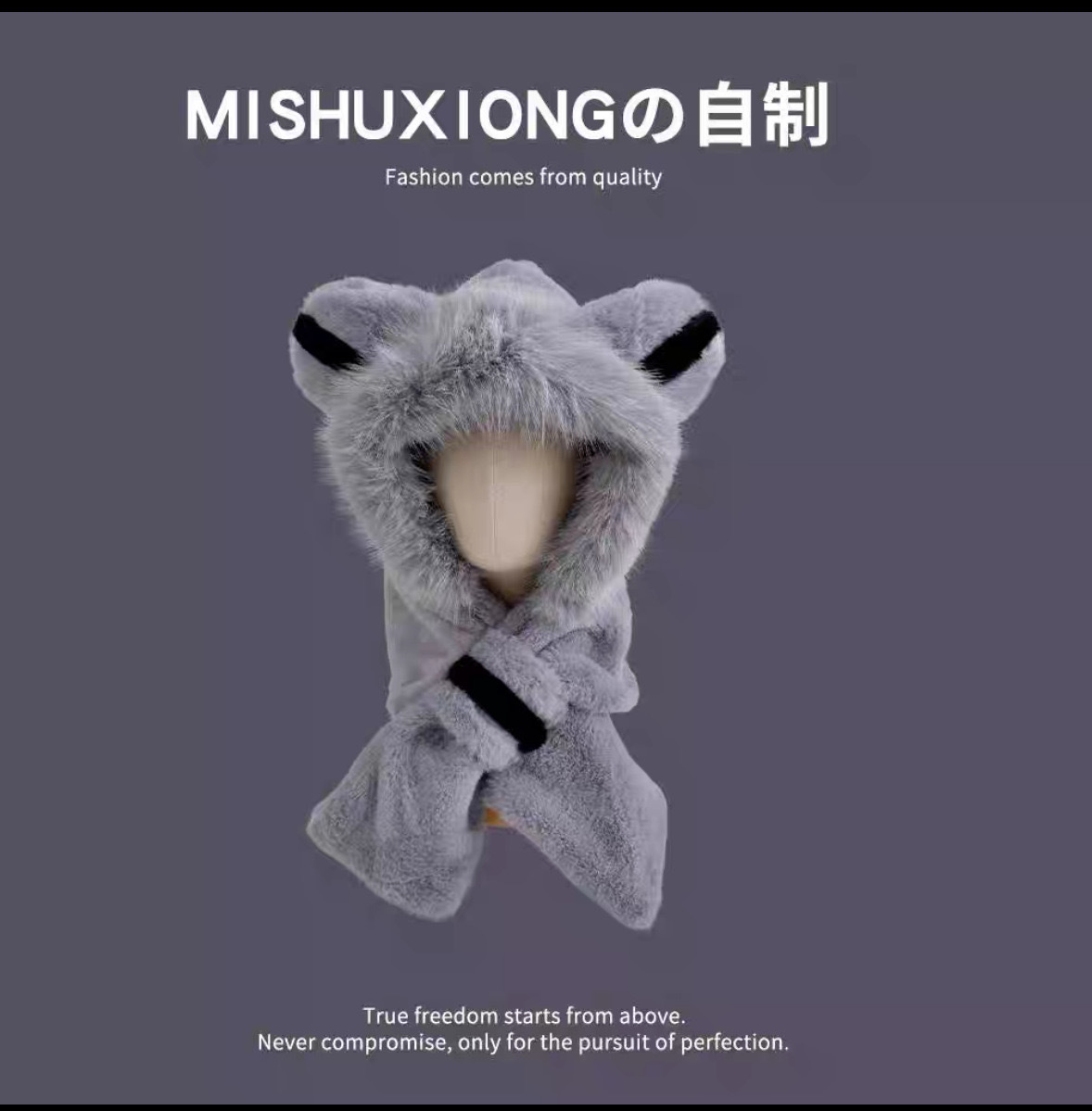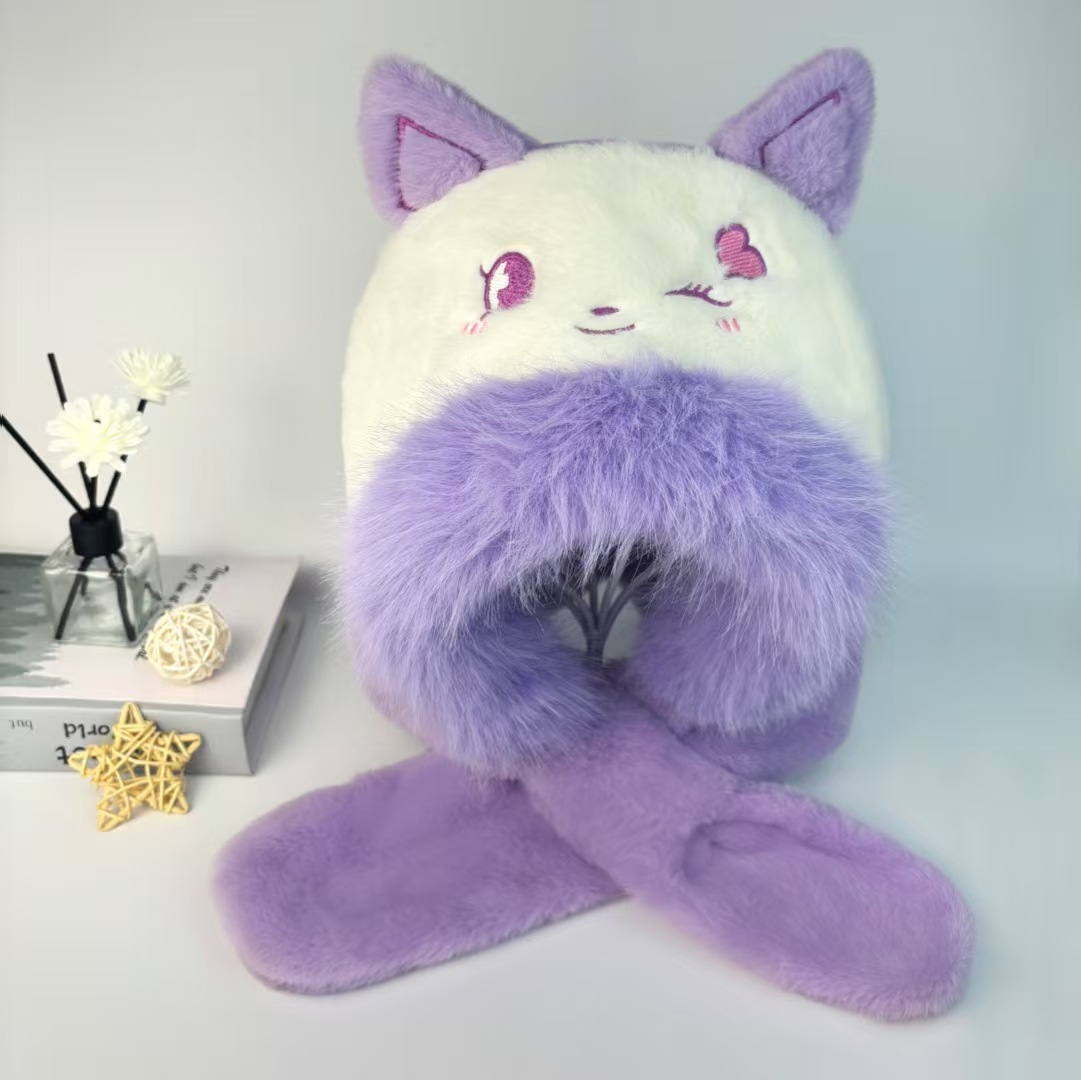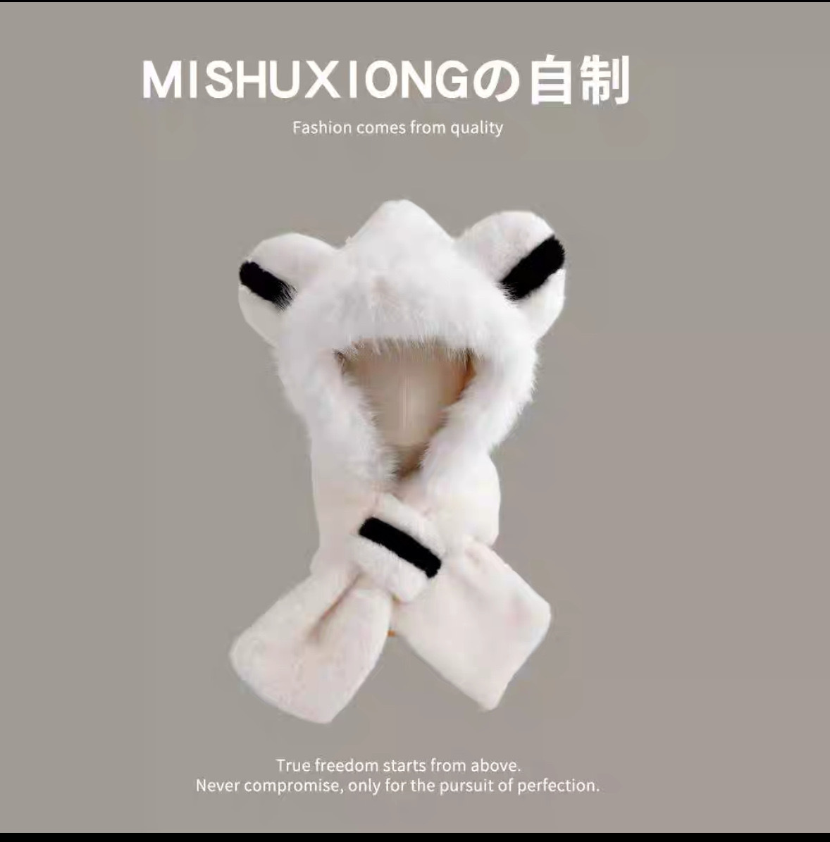 Осенние и зимние шапки для женщин, милый плюшевый шарф, утолщенный встроенный воротник-шарф, плюшевая шапка для велоспорта, теплая шапка с защитой для ушей