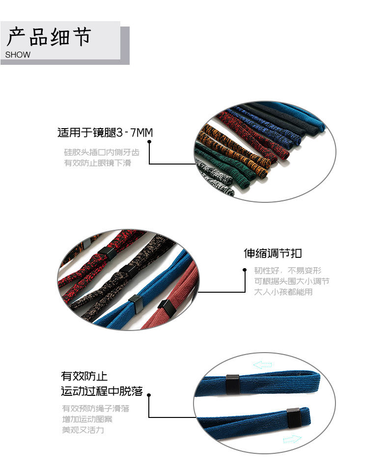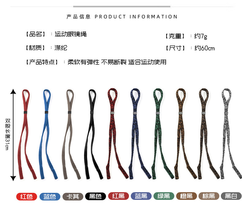 Очки Веревка Очки Крепежный ремень Спортивный ремешок для очков Ремешок для очков Нескользящая цепочка для очков Красочный нейлоновый ремешок