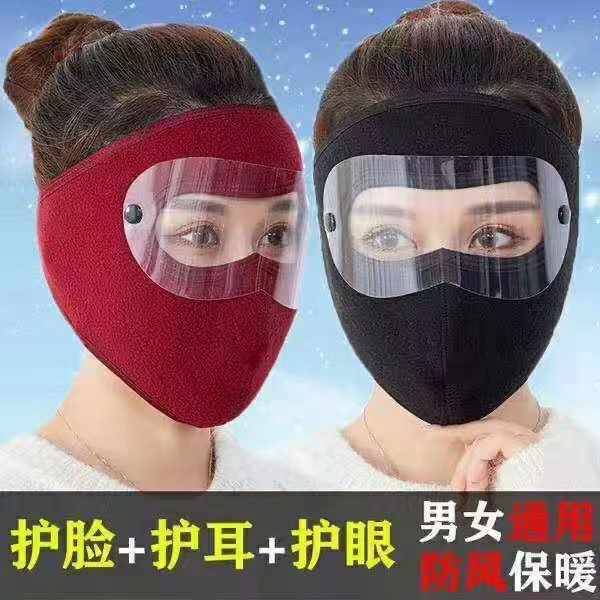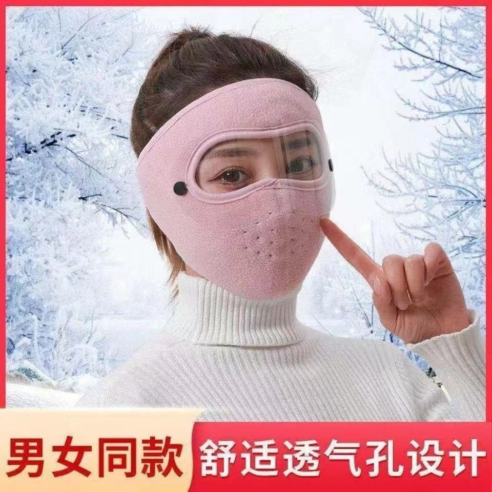 Осенне-зимняя теплая маска, двухслойная велосипедная маска из флиса с линзами, морозостойкая и ветрозащитная маска для защиты глаз и ушей