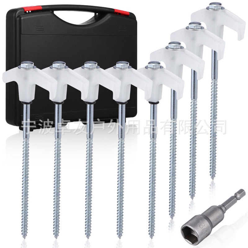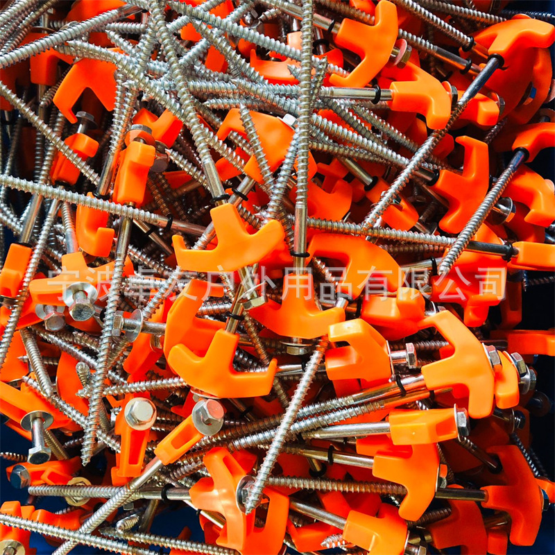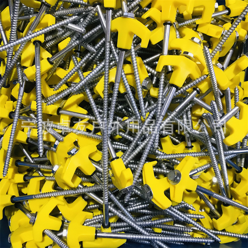 Производители гвоздей для палаток напрямую поставляют высокопрочную резьбу из углеродистой стали M8 * 200 для кемпинга на открытом воздухе с различными пластиковыми головками