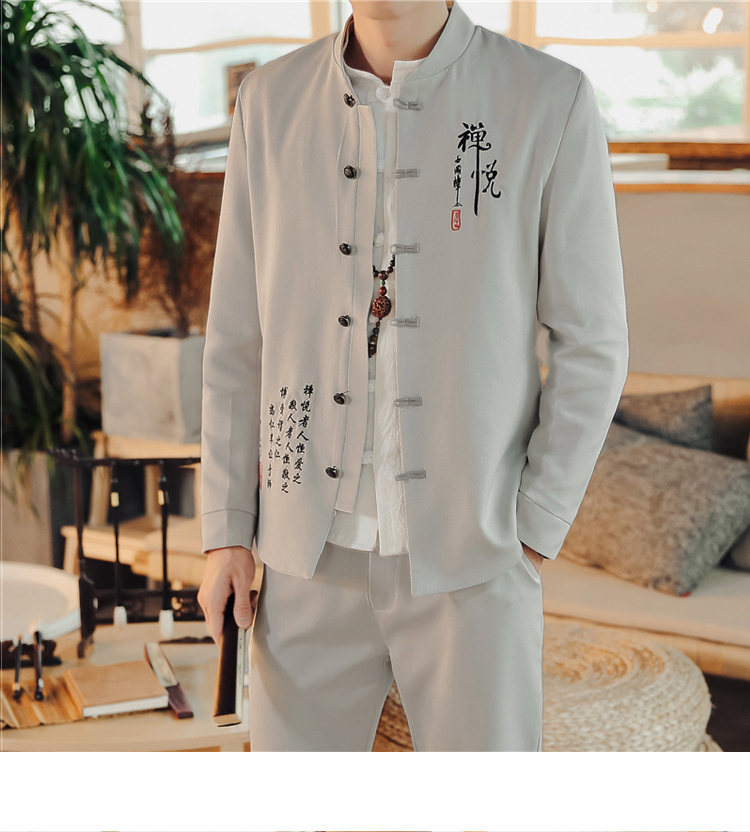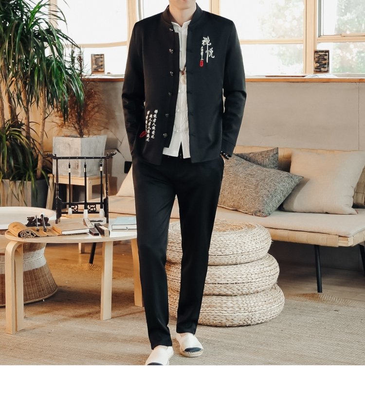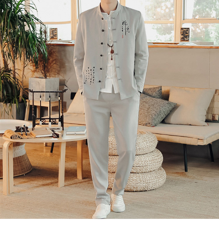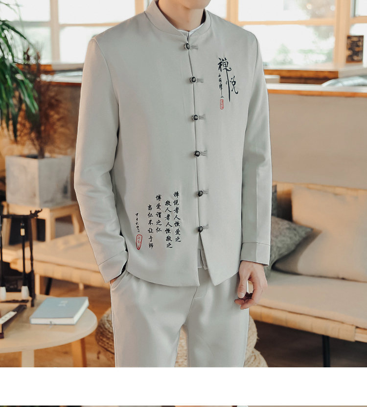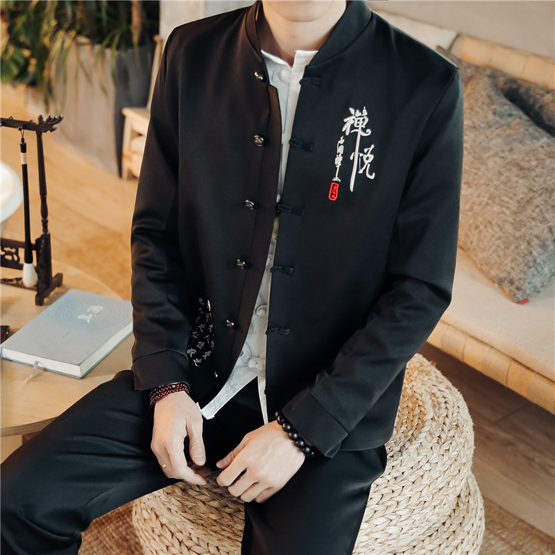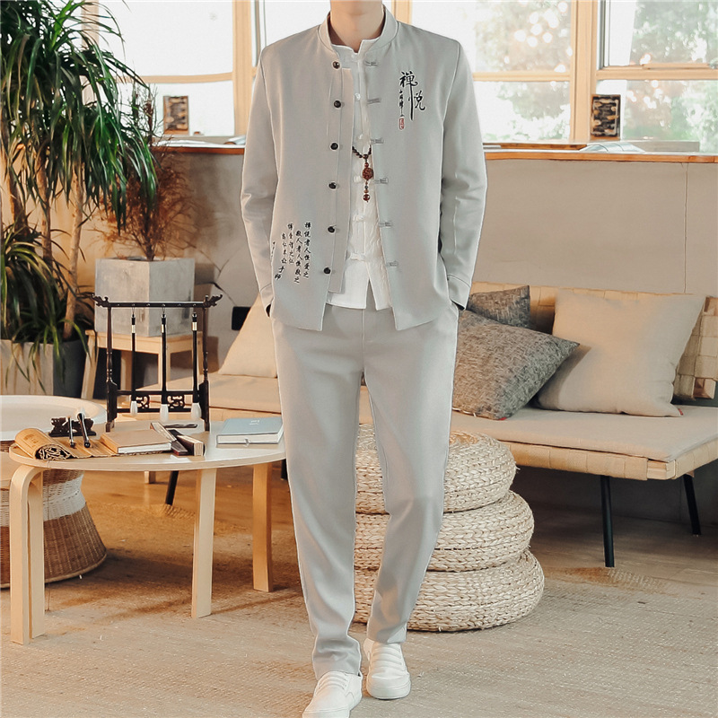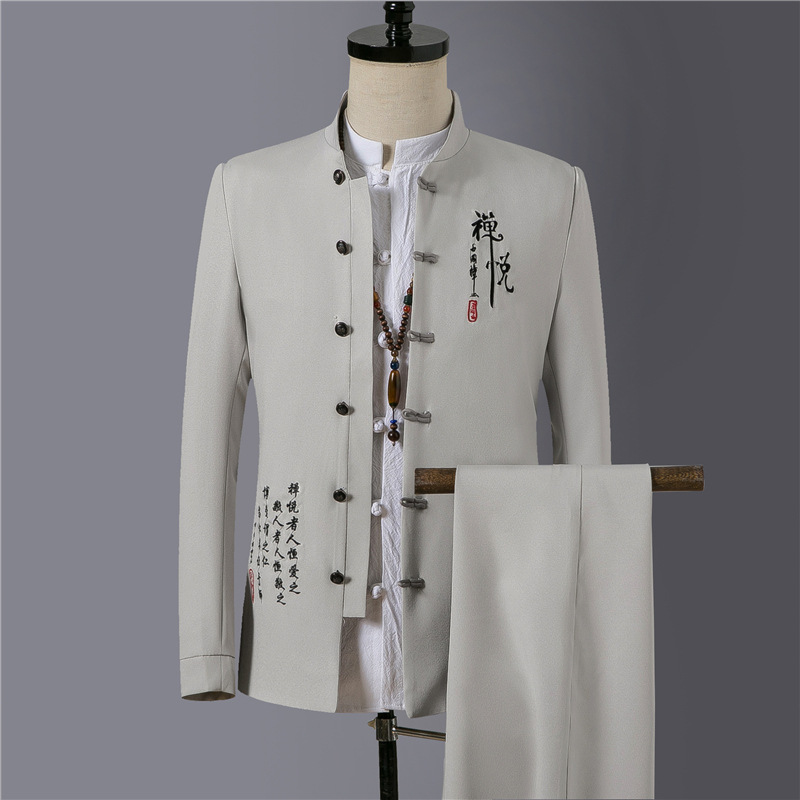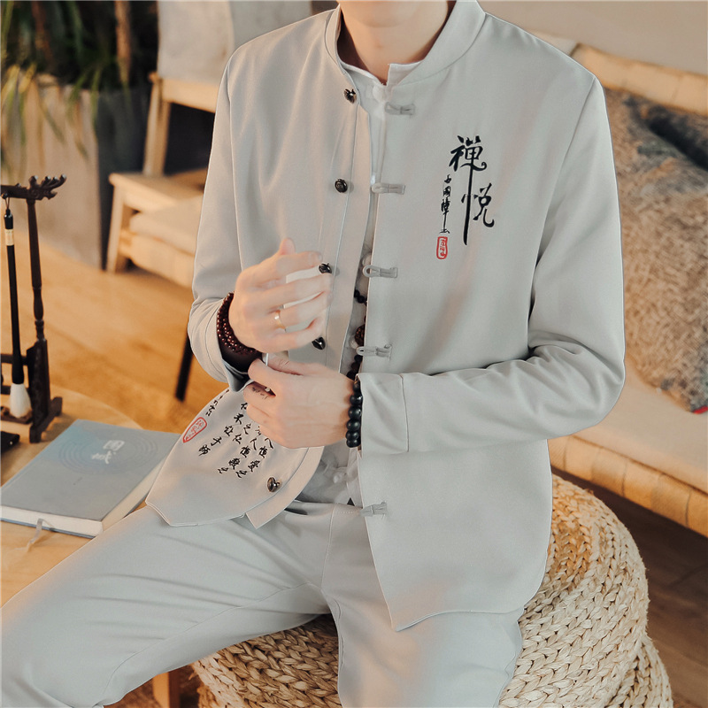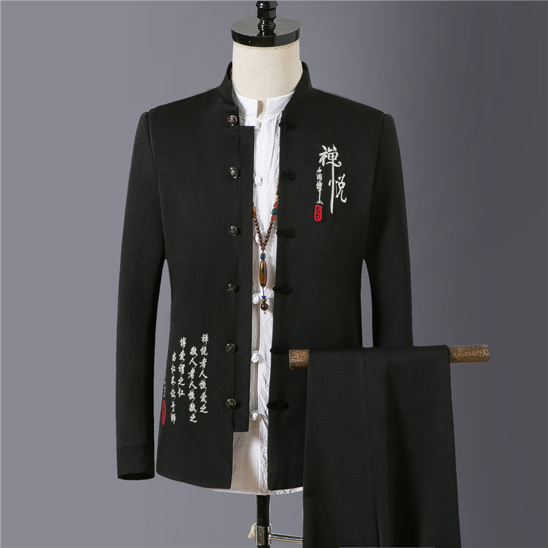 2023 весна и осень мужская одежда в китайском стиле ретро модный костюм Чжуншань с вышивкой костюм мужской модный костюм Тан комплект из двух предметов