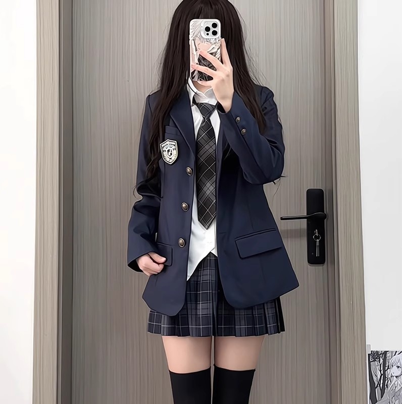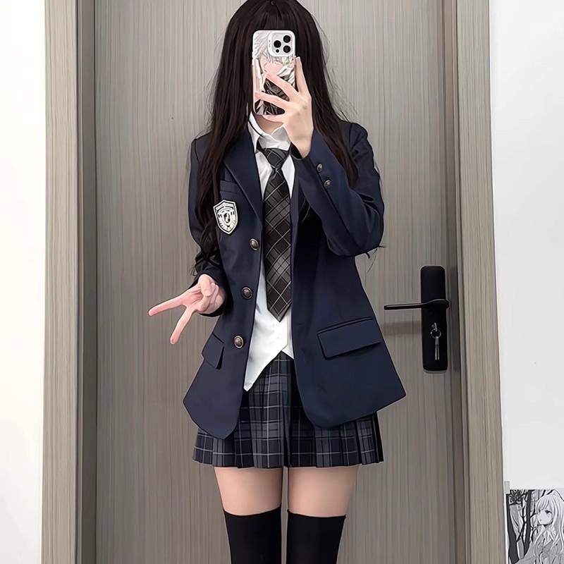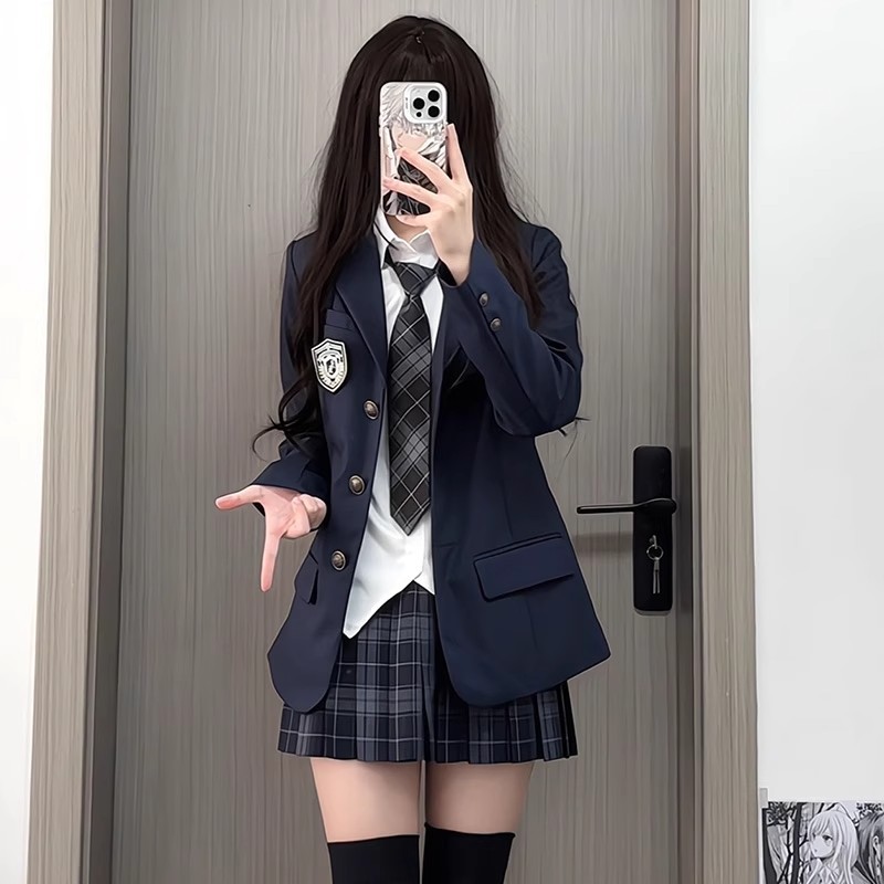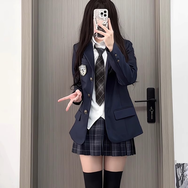 Оригинальный комплект в темно-синем цвете, японский школьный стиль, костюм с клетчатой юбкой и рубашкой, униформа JK, комплект из трех предметов для женщин.