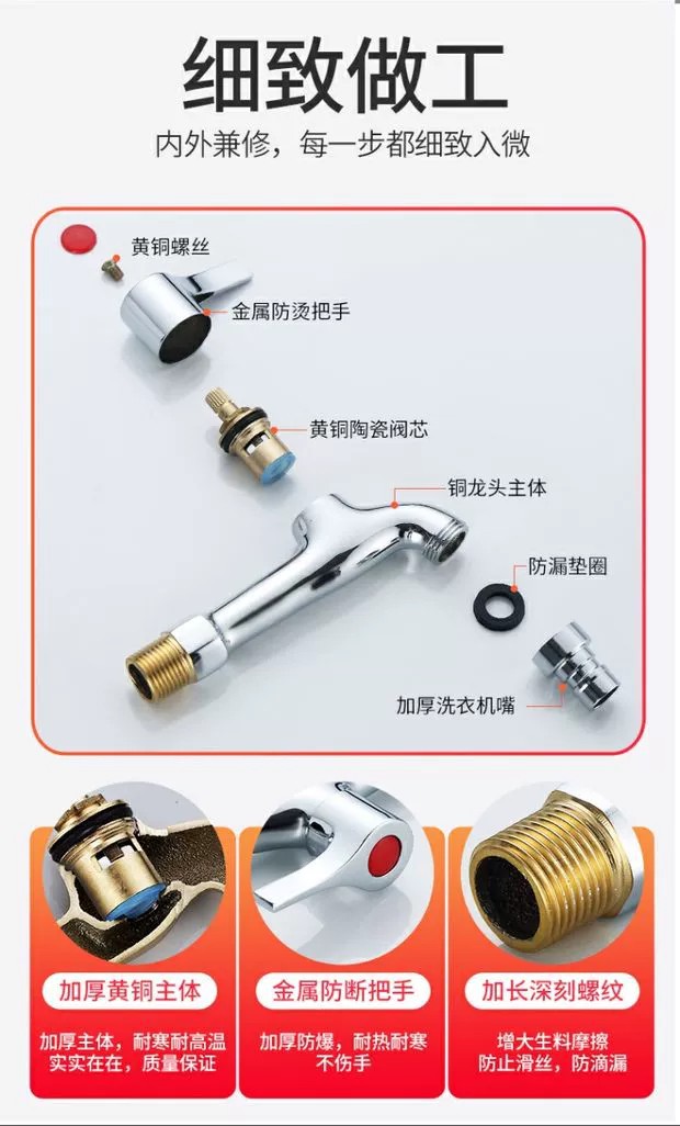 Полностью медный смеситель для стиральной машины одинарный холодный 4 балла Специальный быстросъемный удлиненный соединитель для смесителя для бассейна бытовой смеситель