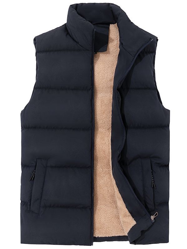 Мужской деловой повседневный жилет для весны и осени в корейском стиле, с воротником-стойкой, больших размеров, с флисовой подкладкой, теплая куртка-пуховик для мужчин