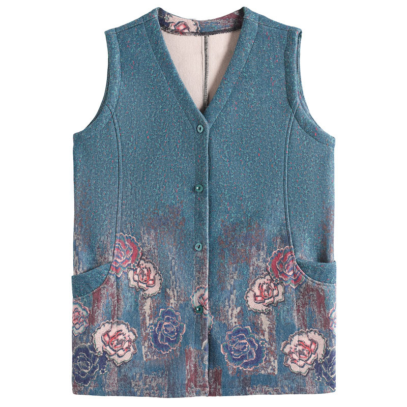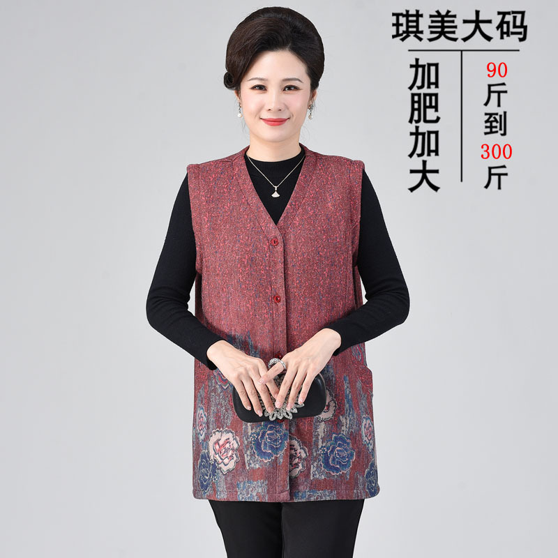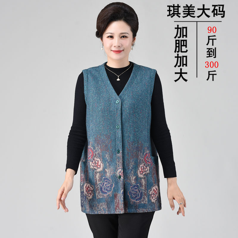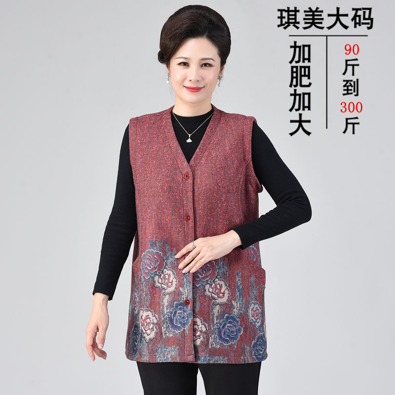 Весенний жилет для среднего и пожилого возраста 200 кг плюс толстый плюс размер бабушка Толстая мать женский жилет кардигана с пионом