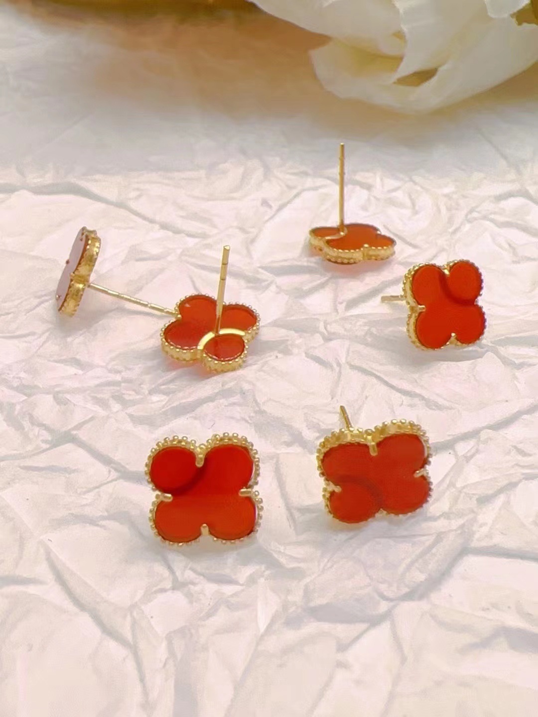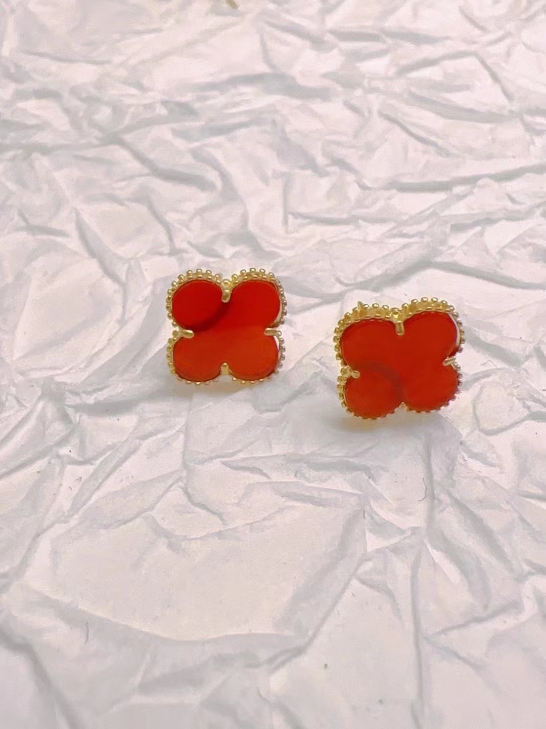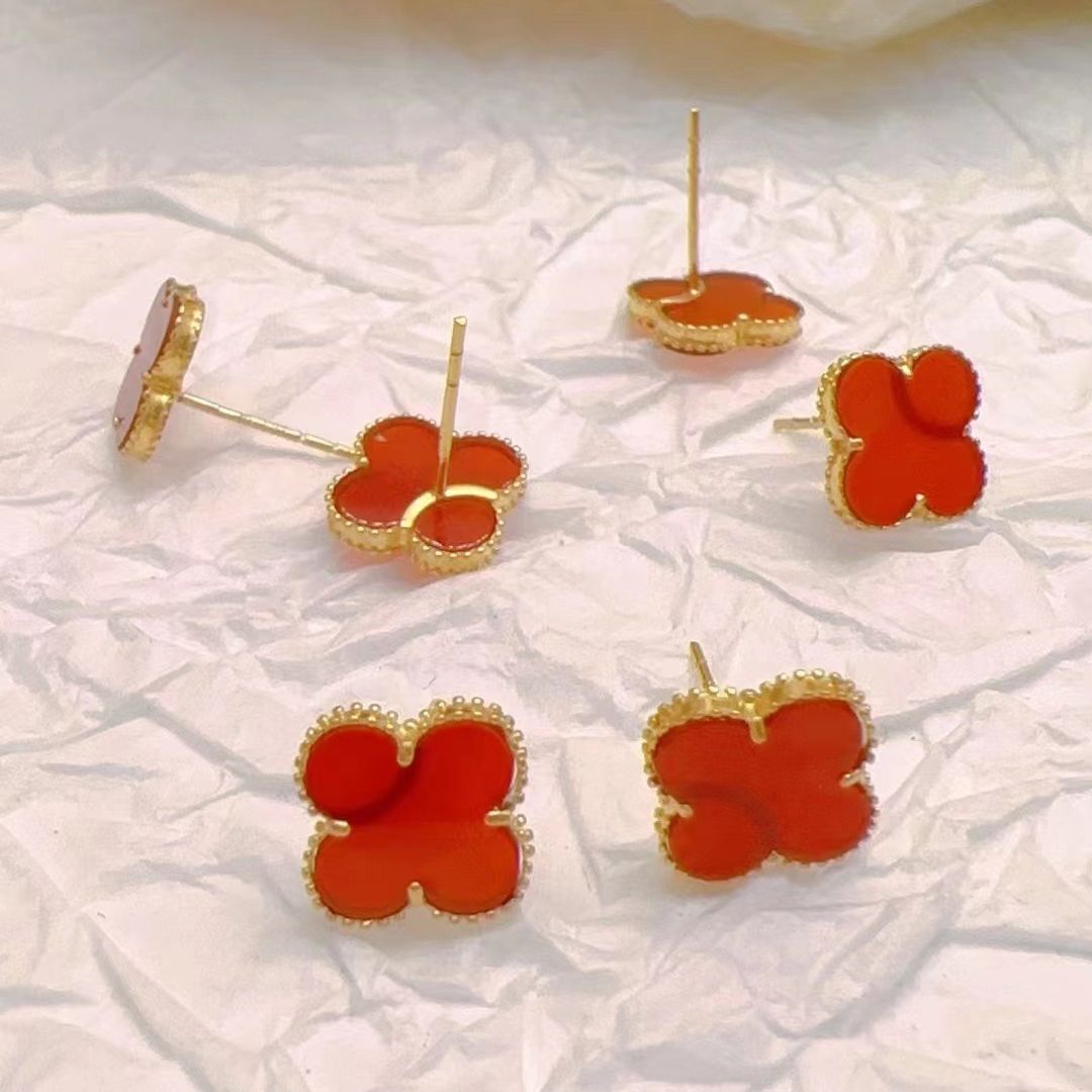 Золото 18K золото инкрустированные натуральный красный агат серьги с четырьмя листами клевера многоцветный всего тела K золото Мода Взрыв одна серьга