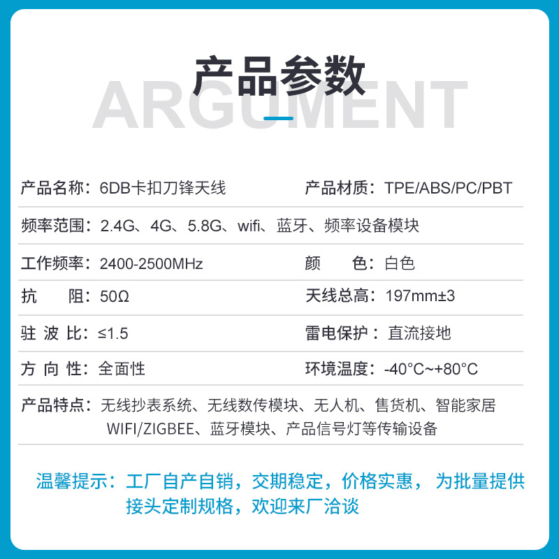 2,4 г 5 г 5,8 г двухчастотный WIFI Bluetooth LTE 4G NB-IOT Антенна клеевой стержень 6 дБ с защелкой