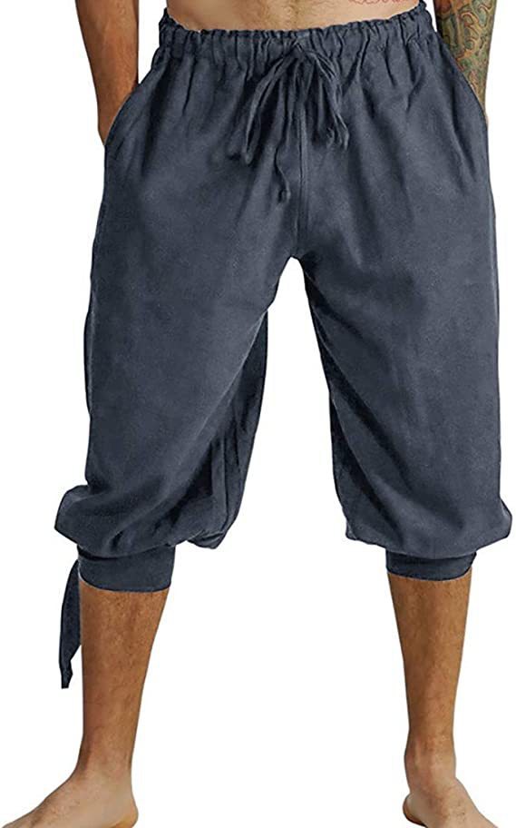 Европейские и американские трансграничные популярные мужские брюки из хлопка и льна Amazon, брюки с ремешком на щиколотке, средневековые узкие леггинсы пирата викингов