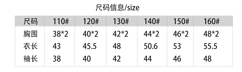 110cm; 120cm; 130cm; 140cm; 150cm; 160cm