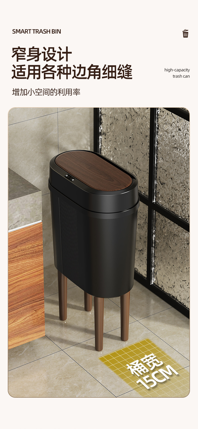 Настенное мусорное ведро с педалью, имитирующее текстуру дерева, для узких пространств, подходит для ванной, гостиной, кухни, прямоугольное, с большой вместимостью.