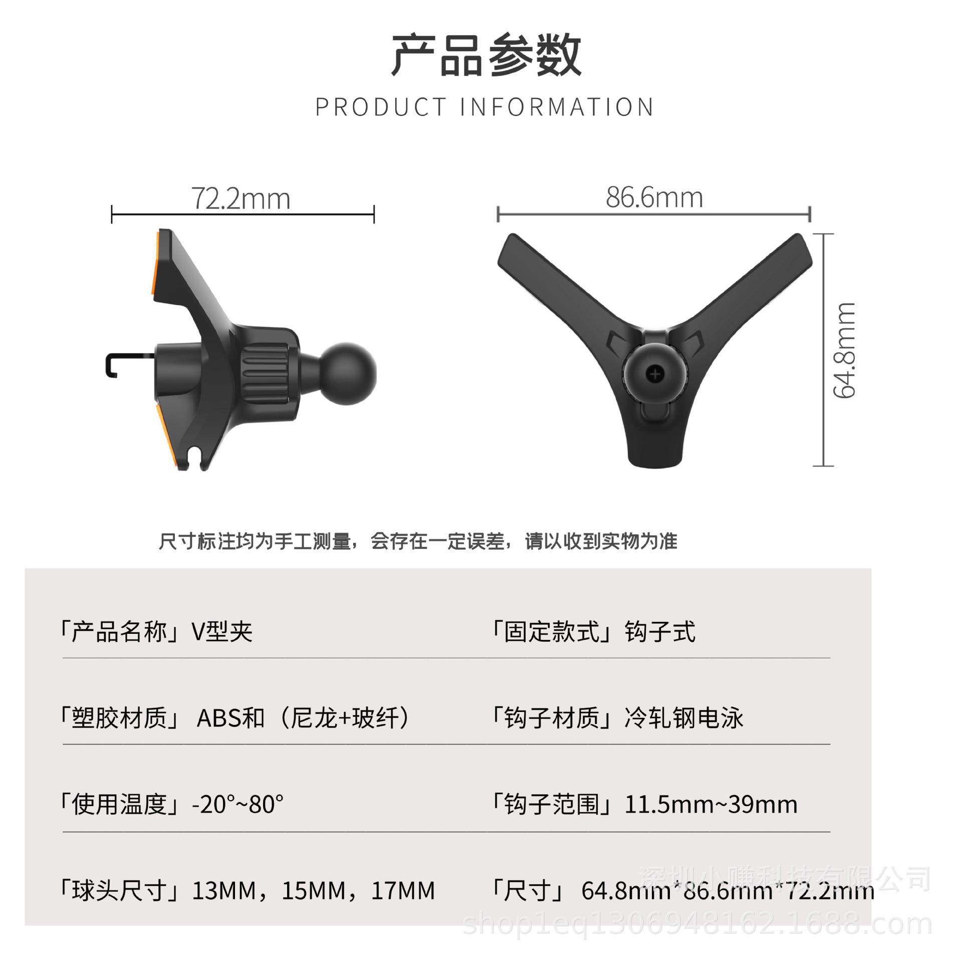V-образный зажим (шаровой головки 17mm); V-образный зажим (шаровая головка 15 мм); V-образный зажим (шаровой головки 13 мм)