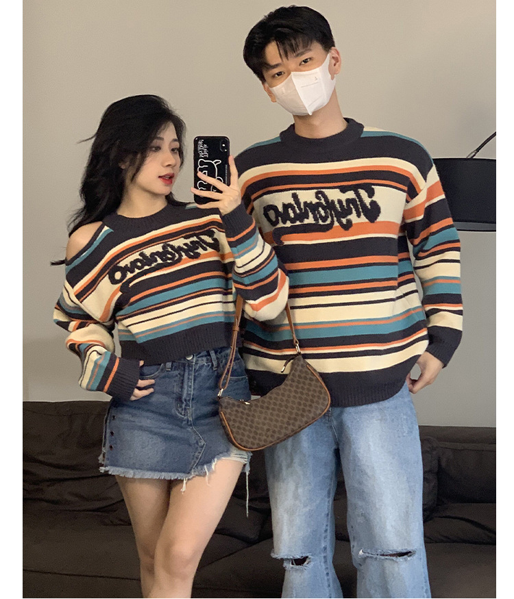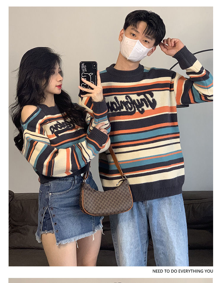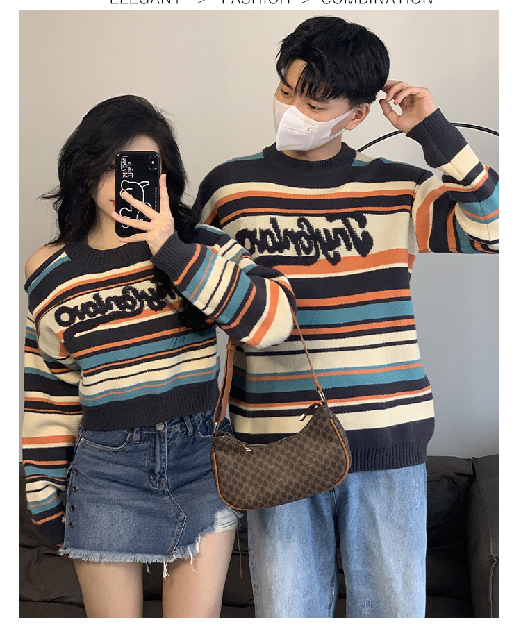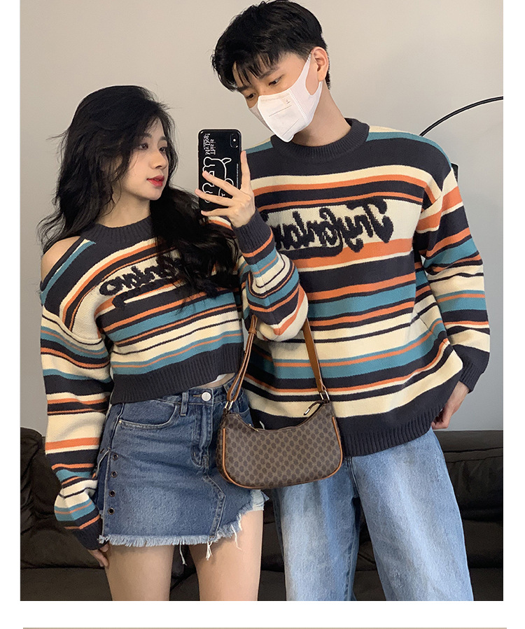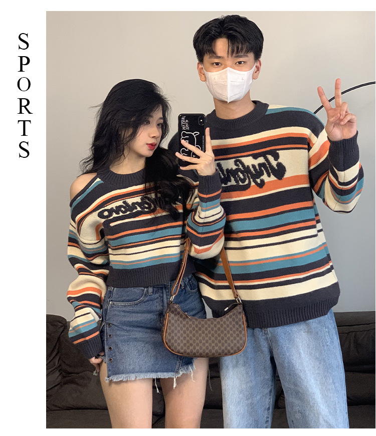 2023 осень и зима новая пара модный бренд полосатый свитер длинный и короткий пуловер свитер для мужчин и женщин