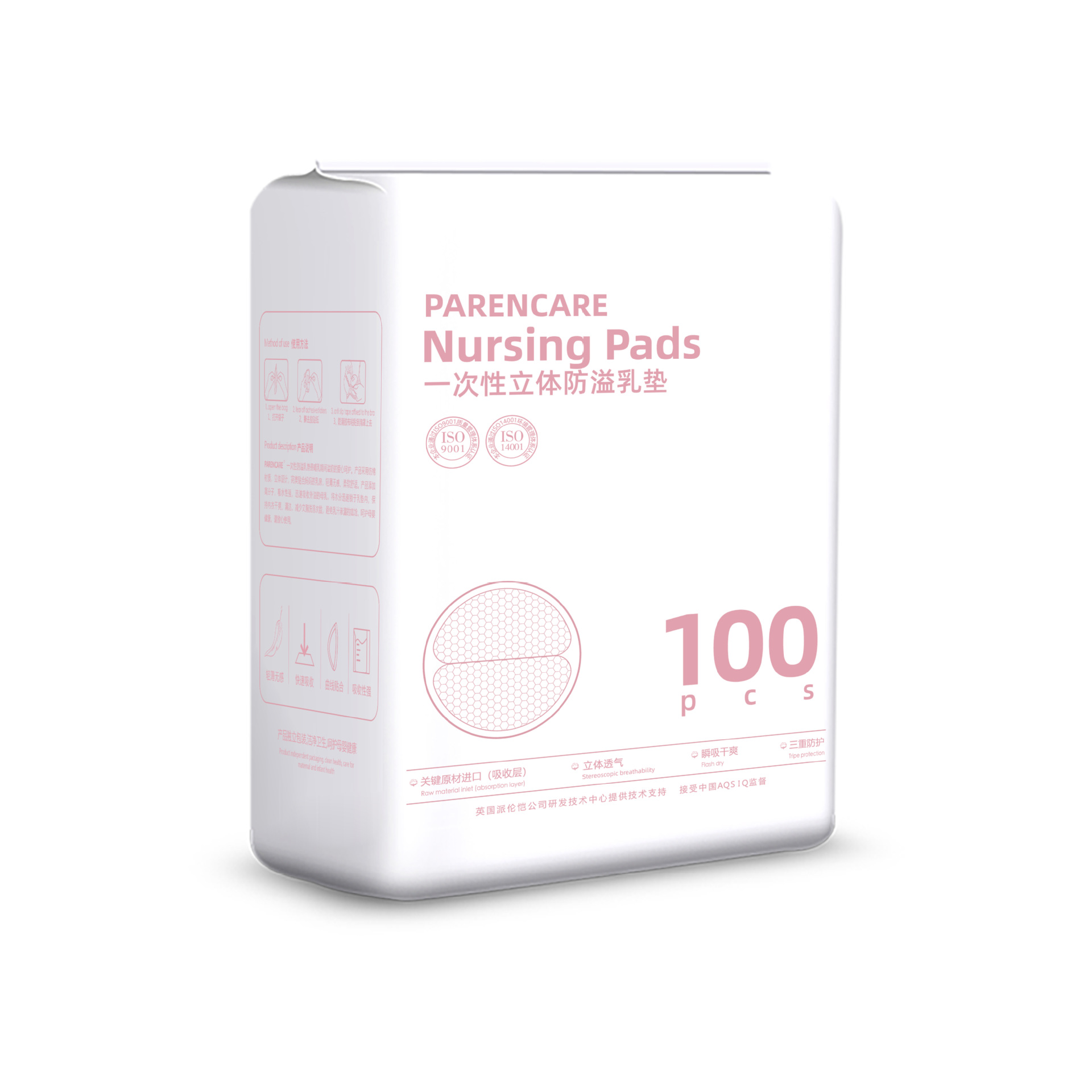 Одноразовые прокладки для груди с защитой от протекания, утолщенная версия, 100 штук для беременных и женщин после родов, впитывающие, дышащие, трехмерные, сухие, непромокаемые и защитные от протеканий.