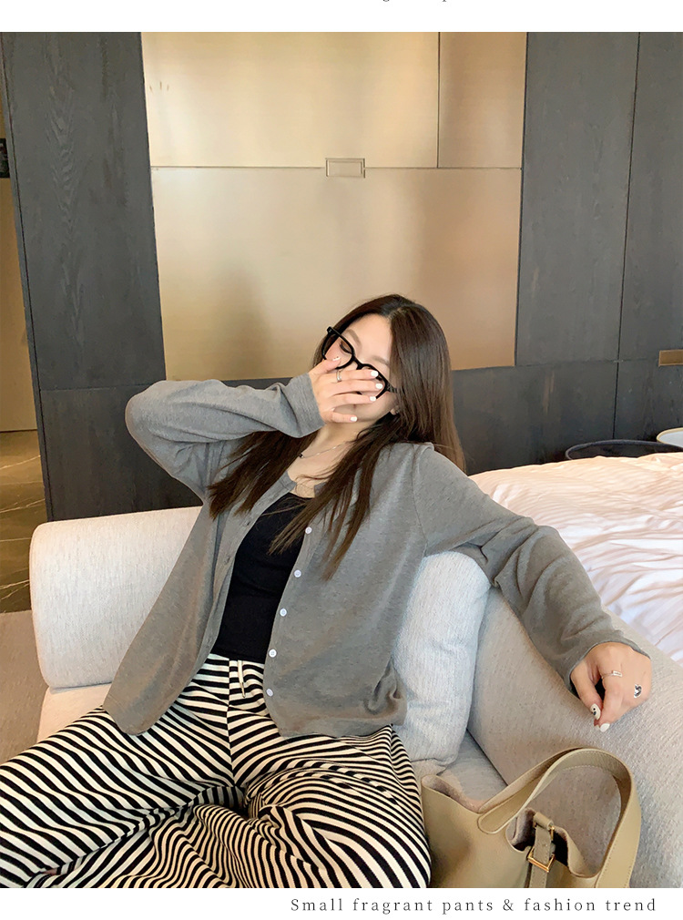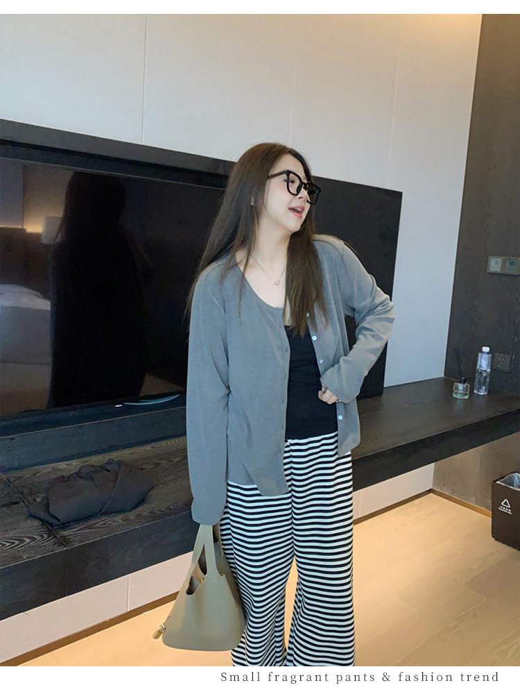 Женский элегантный вязаный кардиган больших размеров с длинными рукавами, женское свободное однотонное тонкое пальто с V-образным вырезом для полных девушек ранней осени