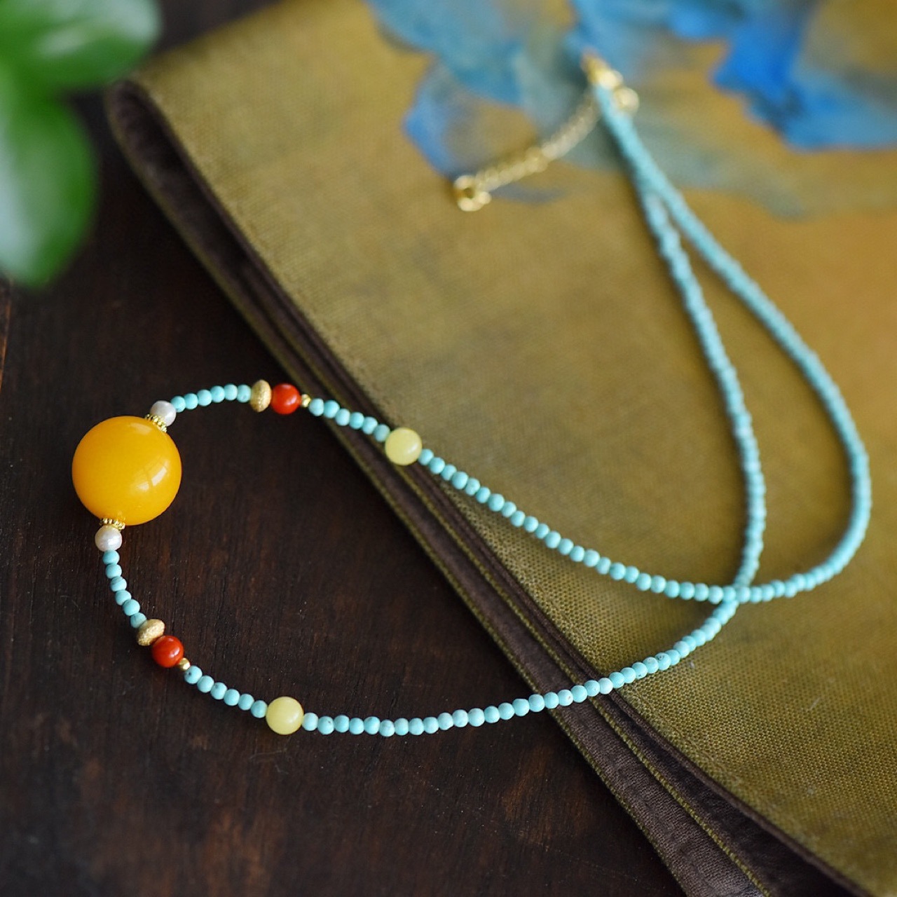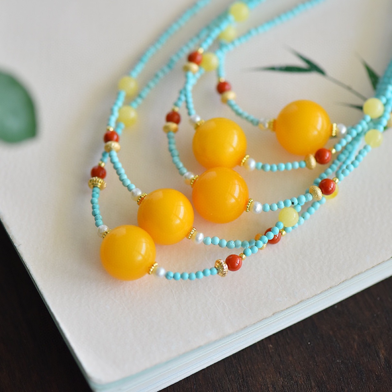 Цепочка на ключицу из круглых бусин из натурального русского пчелиного воска Размер Около 15,3 мм отправить цепочку из Натуральной Бирюзы