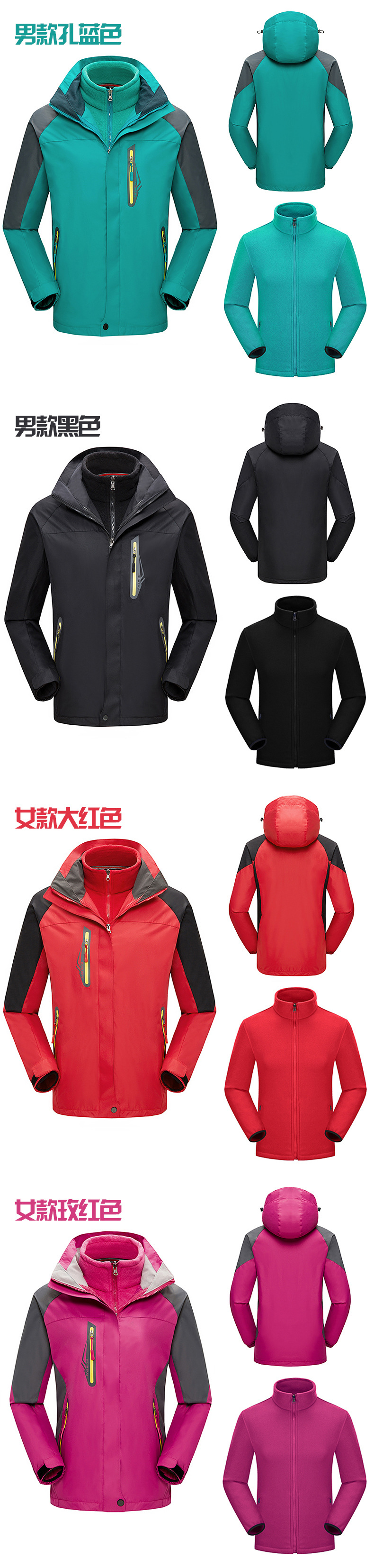 Осенние и зимние уличные мужские и женские куртки, ветрозащитный и водонепроницаемый комплект из двух предметов, теплая и утолщенная рабочая одежда «три в одном», комбинезон с принтом