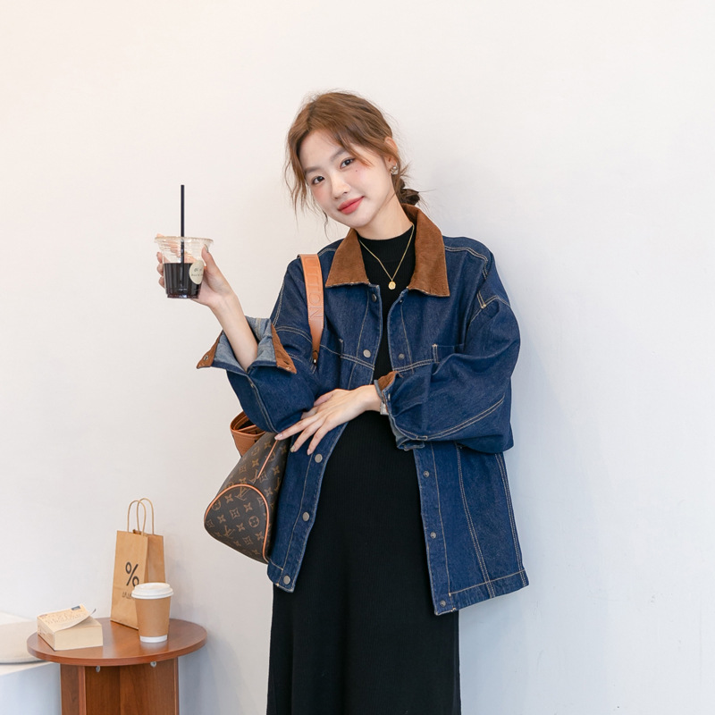 Весенне-осенняя Женская одежда для беременных, Модная Джинсовая куртка для беременных в Корейском стиле контрастного цвета, свободная повседневная куртка, Универсальная джинсовая Новинка в стиле ретро