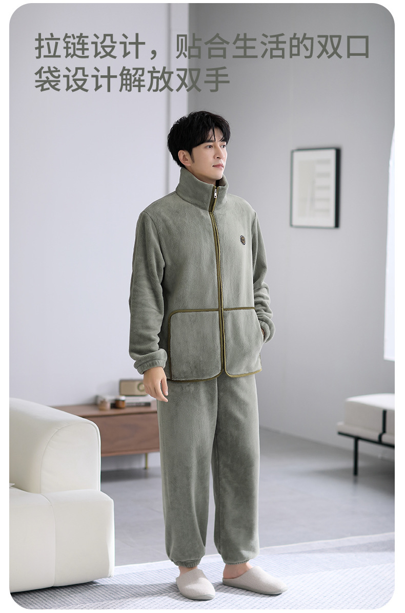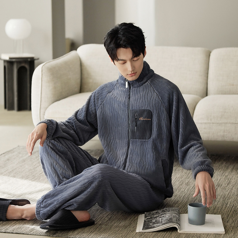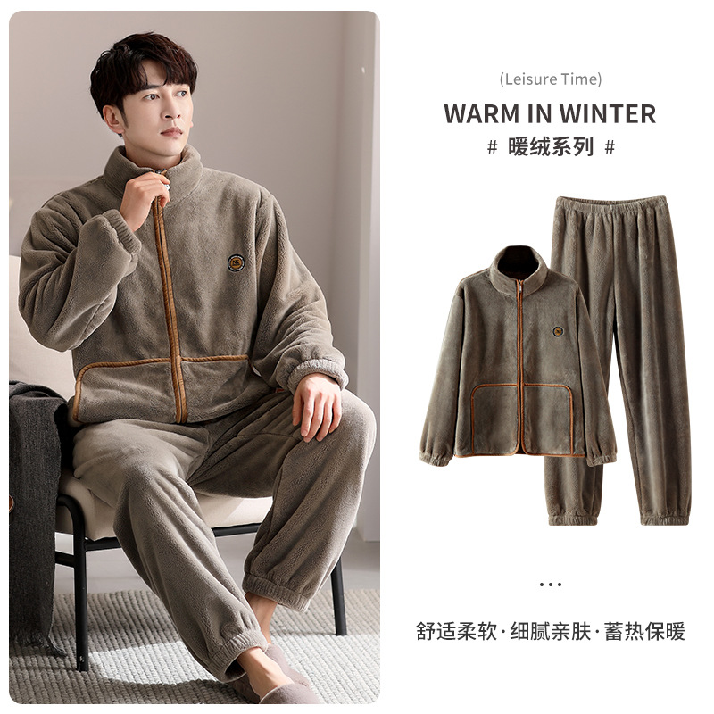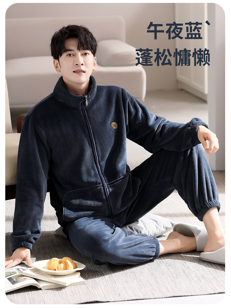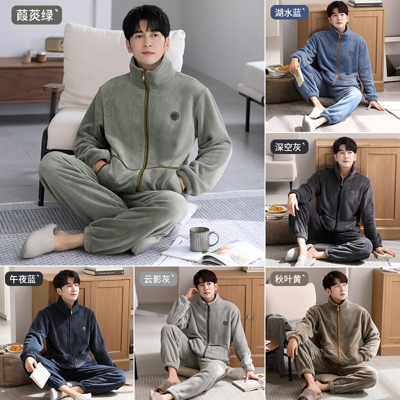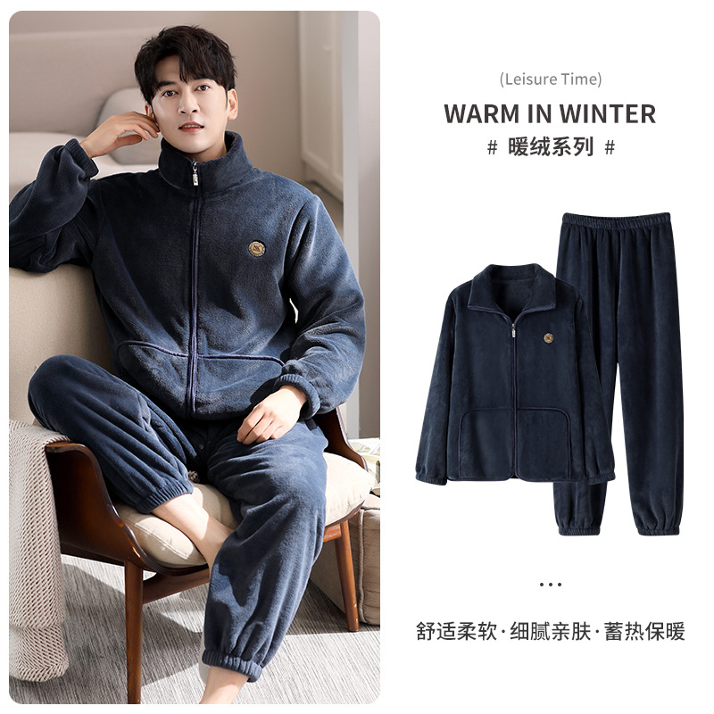 Пижама Мужская зимняя из кораллового флиса утолщенная фланелевая подкладка на флисе Мужская Спортивная осенне-зимняя Домашняя одежда больших размеров