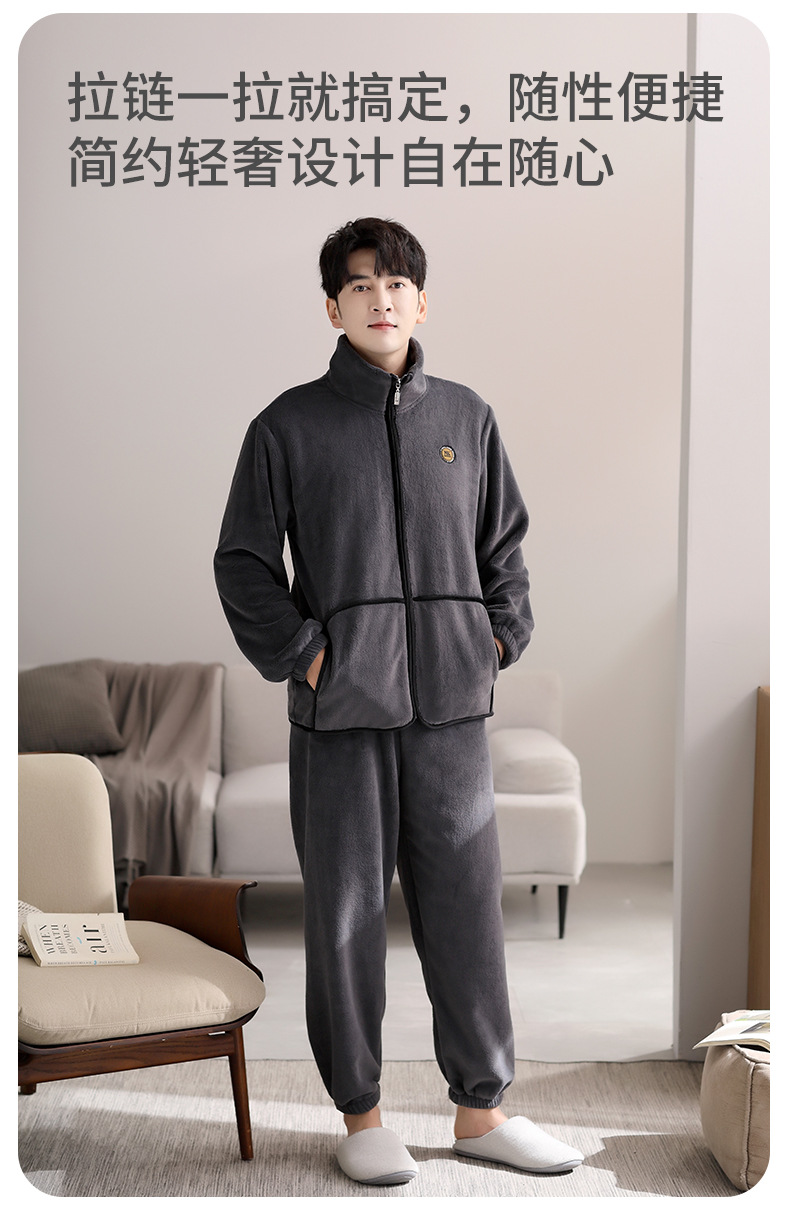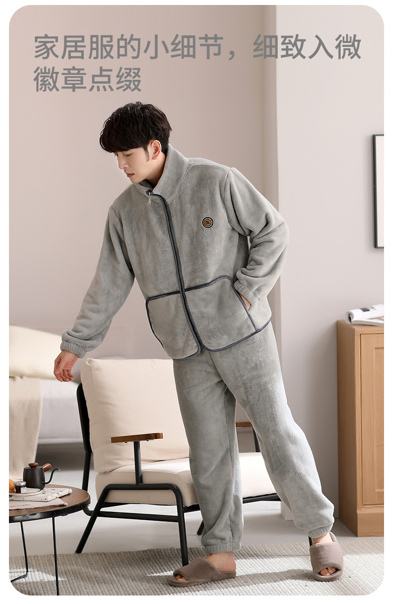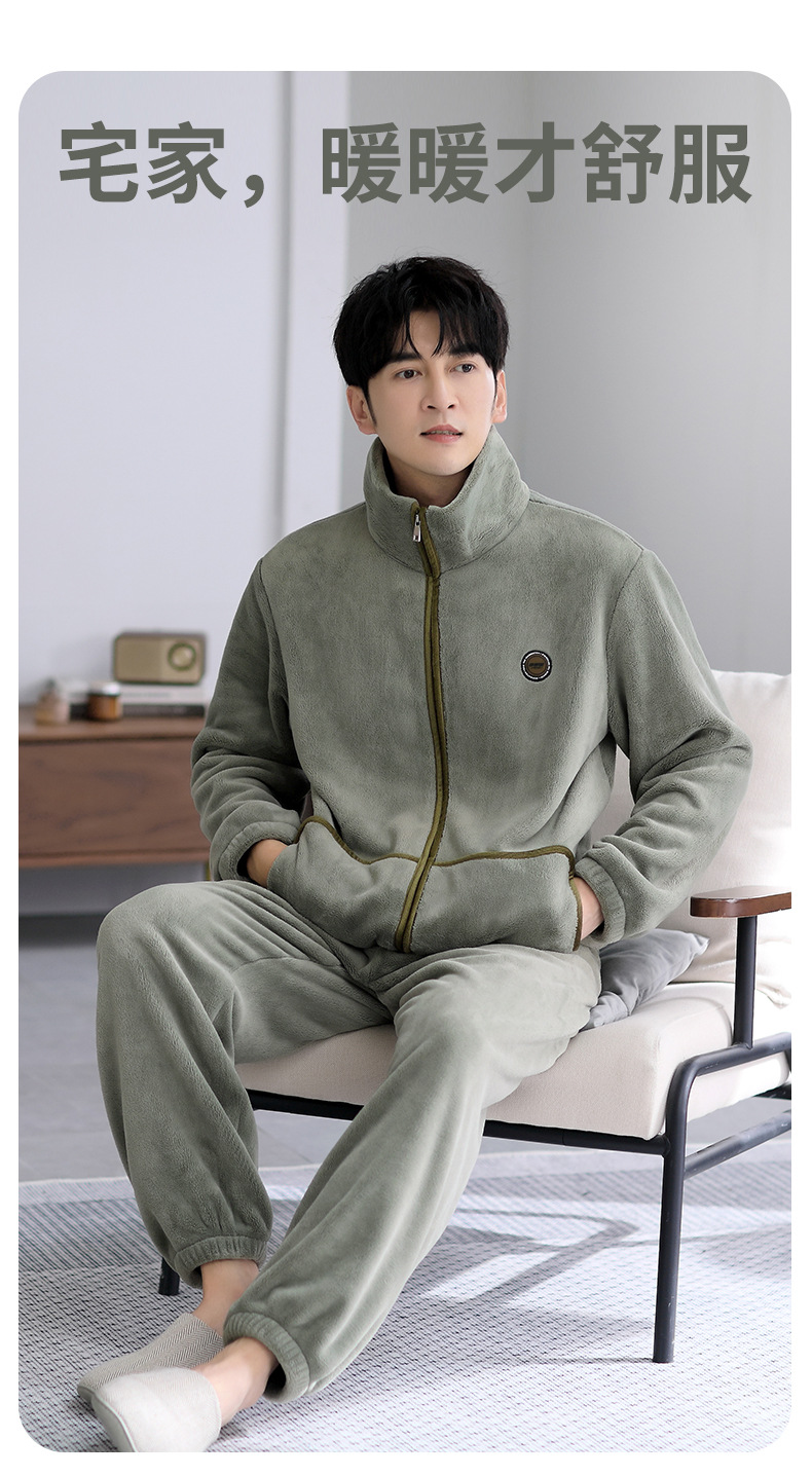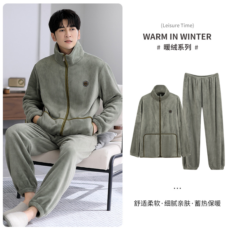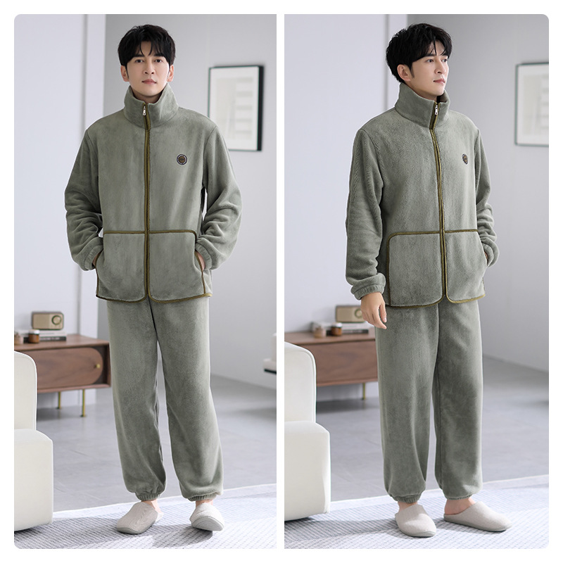 Пижама Мужская зимняя из кораллового флиса утолщенная фланелевая подкладка на флисе Мужская Спортивная осенне-зимняя Домашняя одежда больших размеров