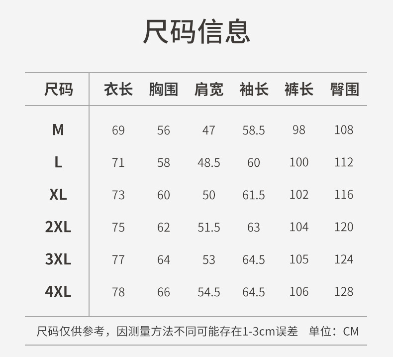 М (в пределах 60kg ); Л ( 60-70kg ); XL ( 70-80kg ); XXL ( 80-90kg ); 3XL ( 90-100kg ); 4XL (в пределах 110kg )