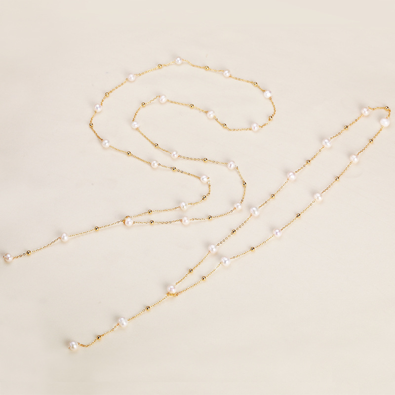 Гипсофила жемчужное ожерелье ручной работы медное позолоченное светлое роскошное нишовое пресноводное жемчужное Длинная регулируемая цепочка на ключицу