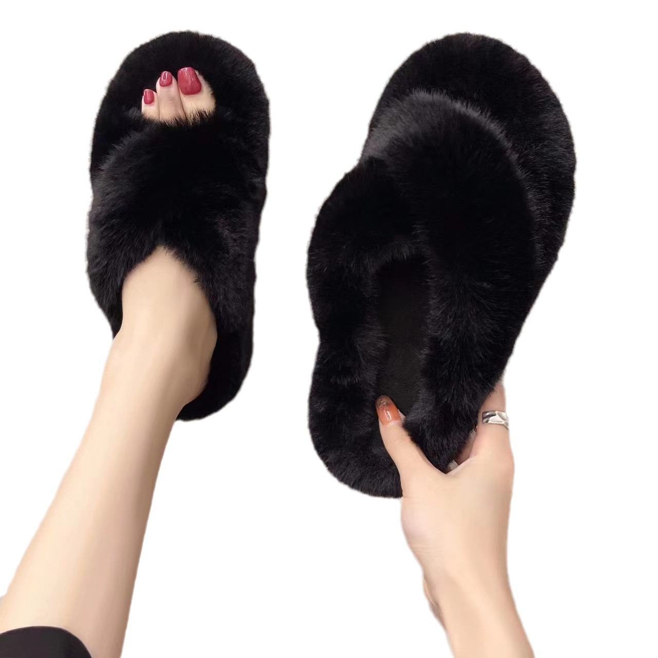 Меховые тапочки для женщин, модные корейские модели 2025 года для осени и зимы, домашние хлопковые тапочки 2024 года для весны и лета.