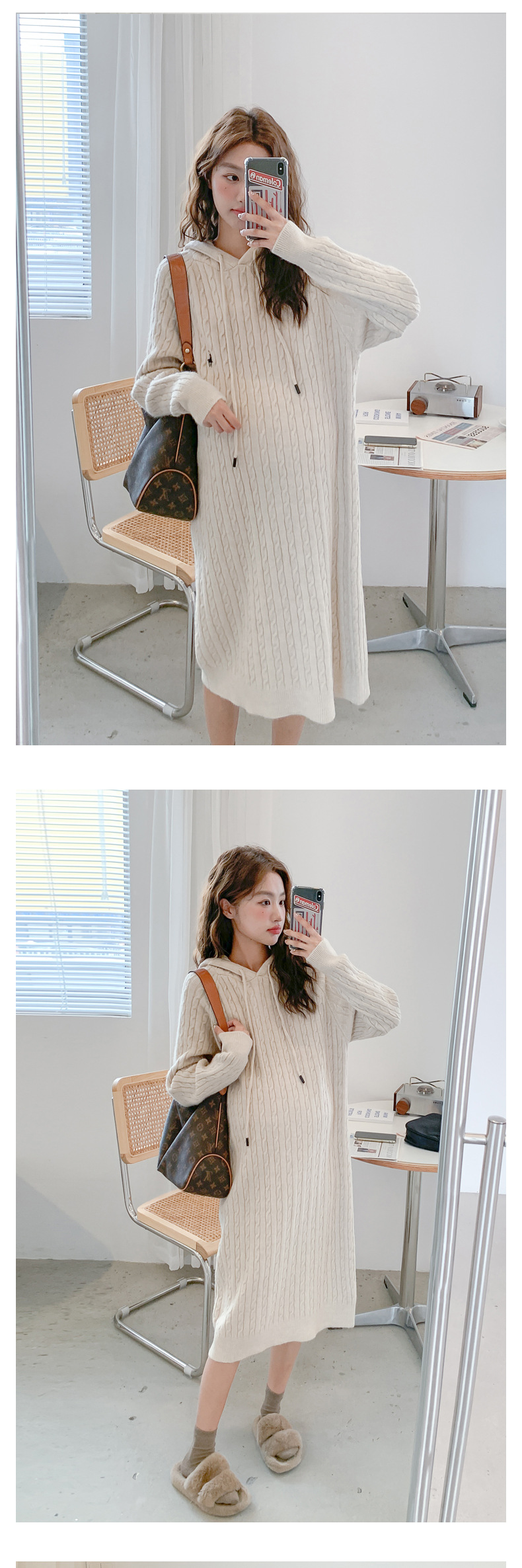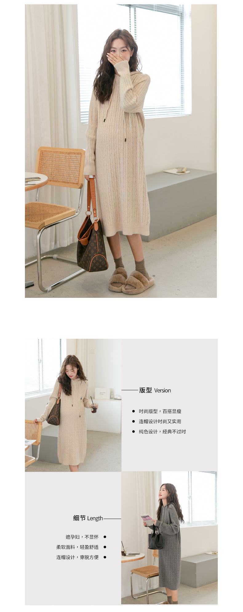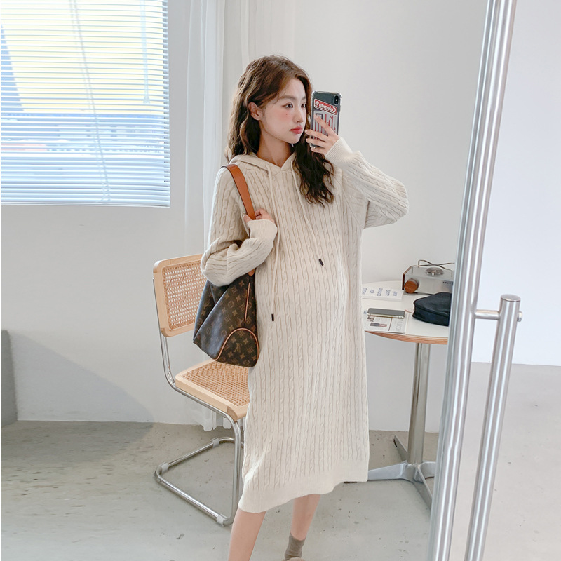 Осенне-зимняя одежда для беременных корейский стиль беременных женщин свитер юбка свободное витое платье вязаный свитер с капюшоном Повседневный модный