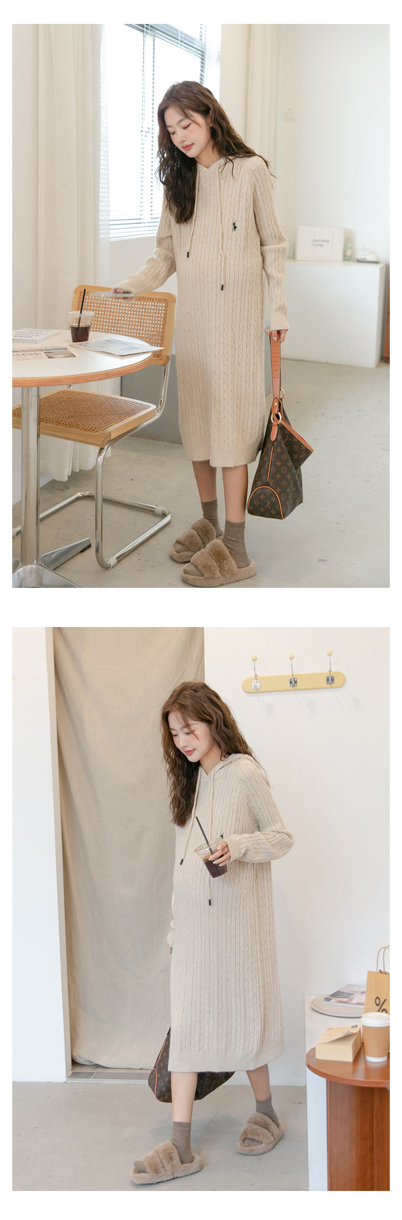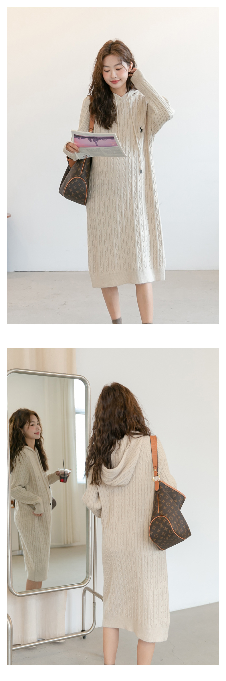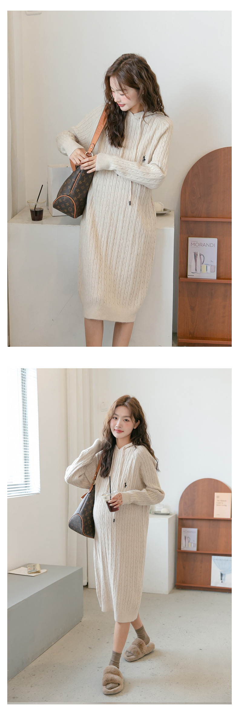 Осенне-зимняя одежда для беременных корейский стиль беременных женщин свитер юбка свободное витое платье вязаный свитер с капюшоном Повседневный модный
