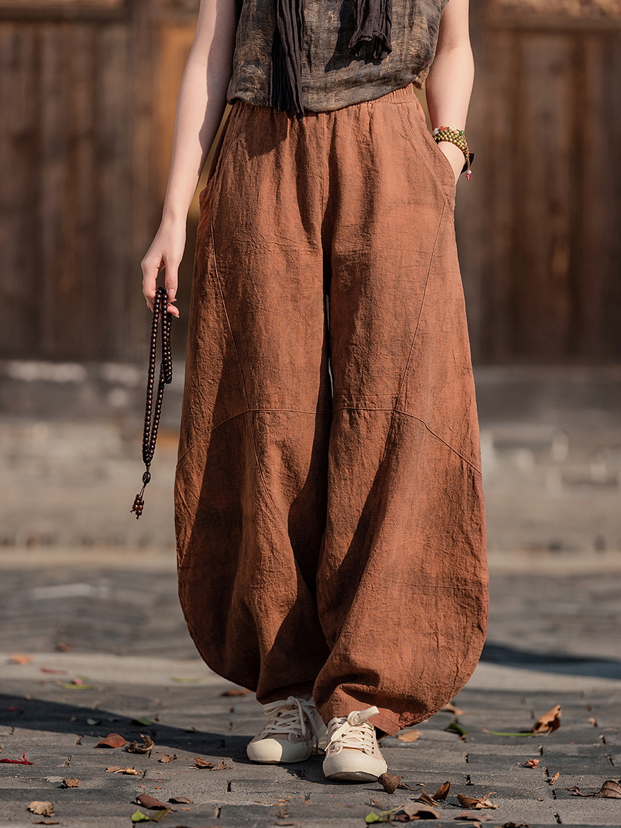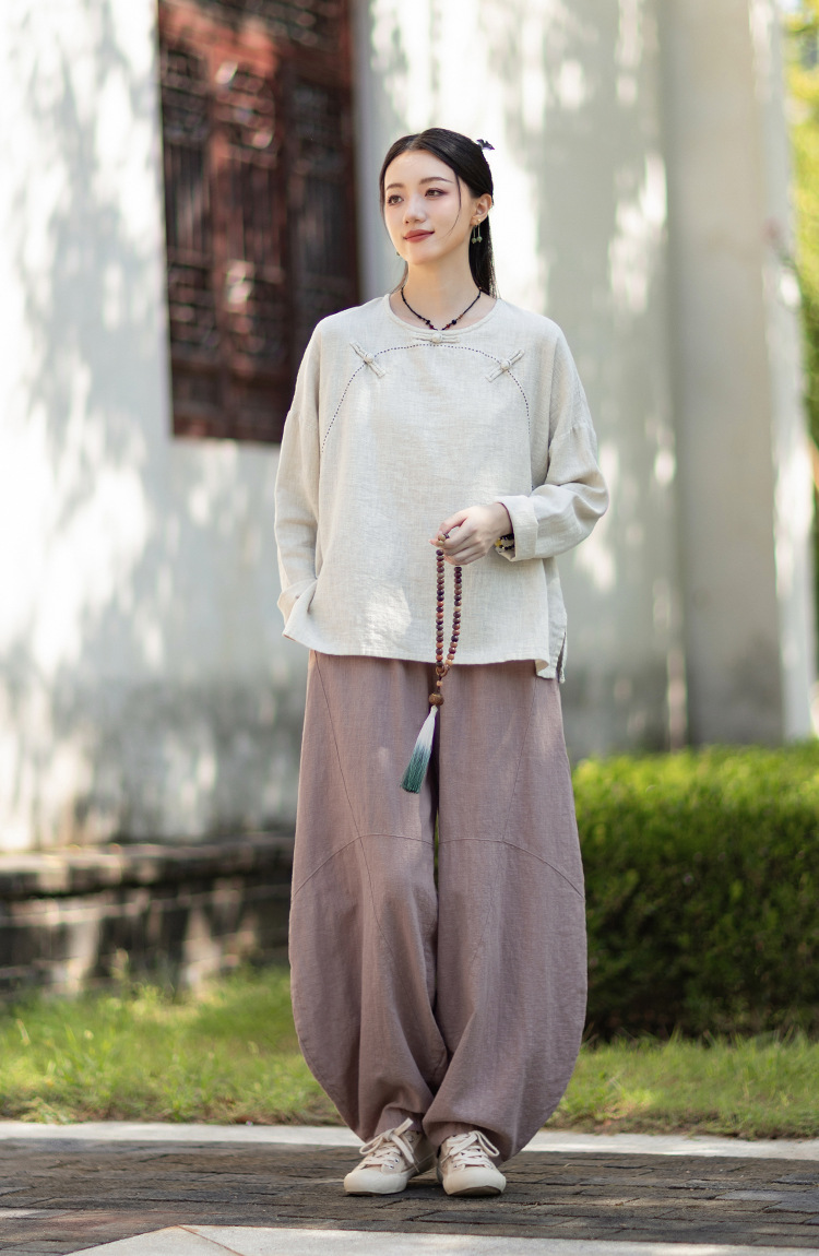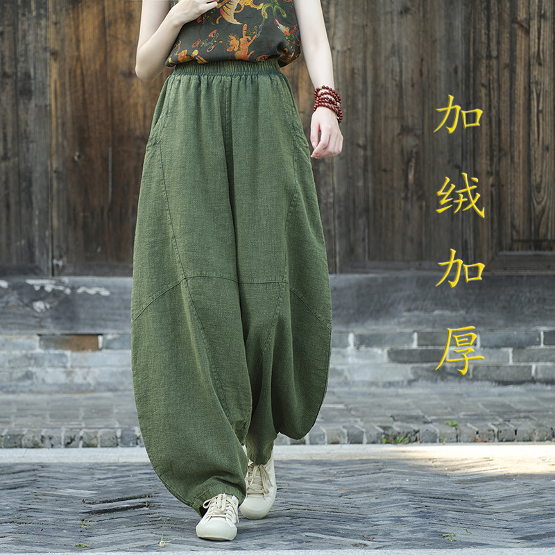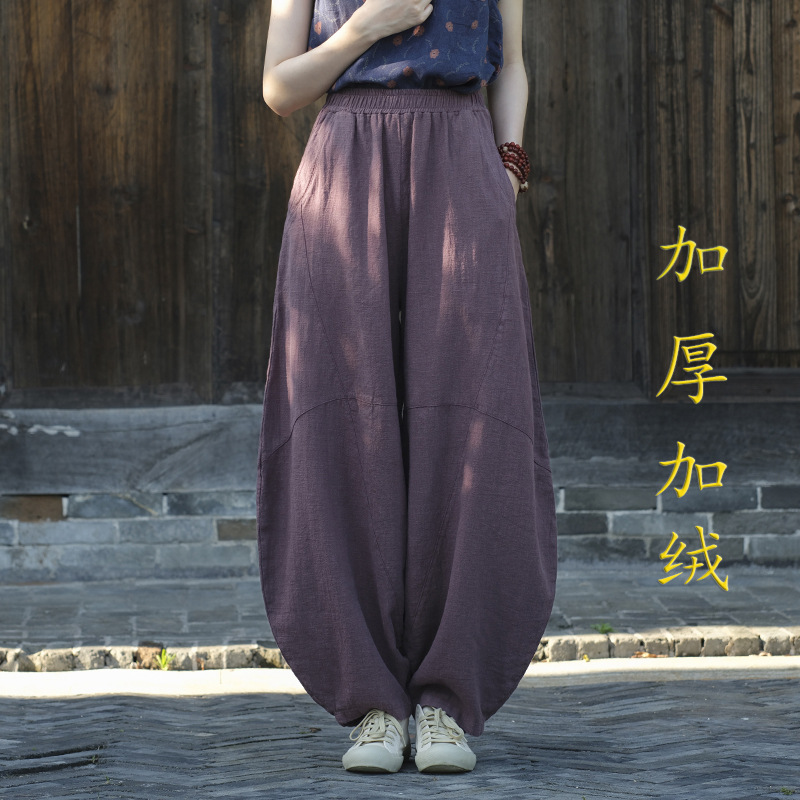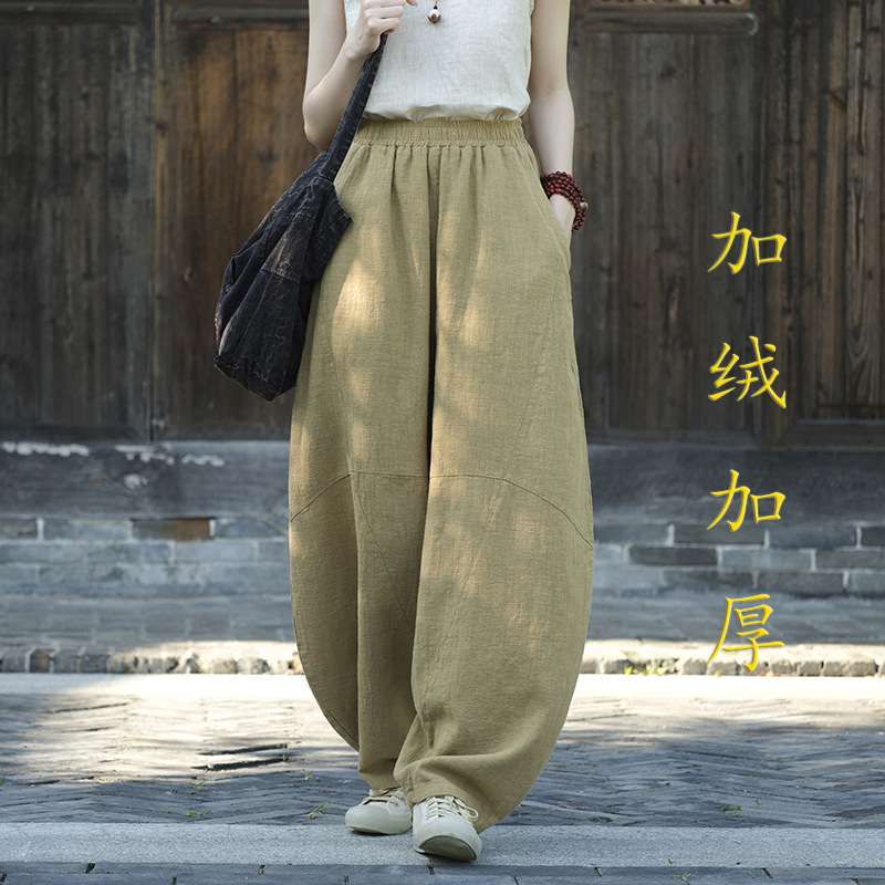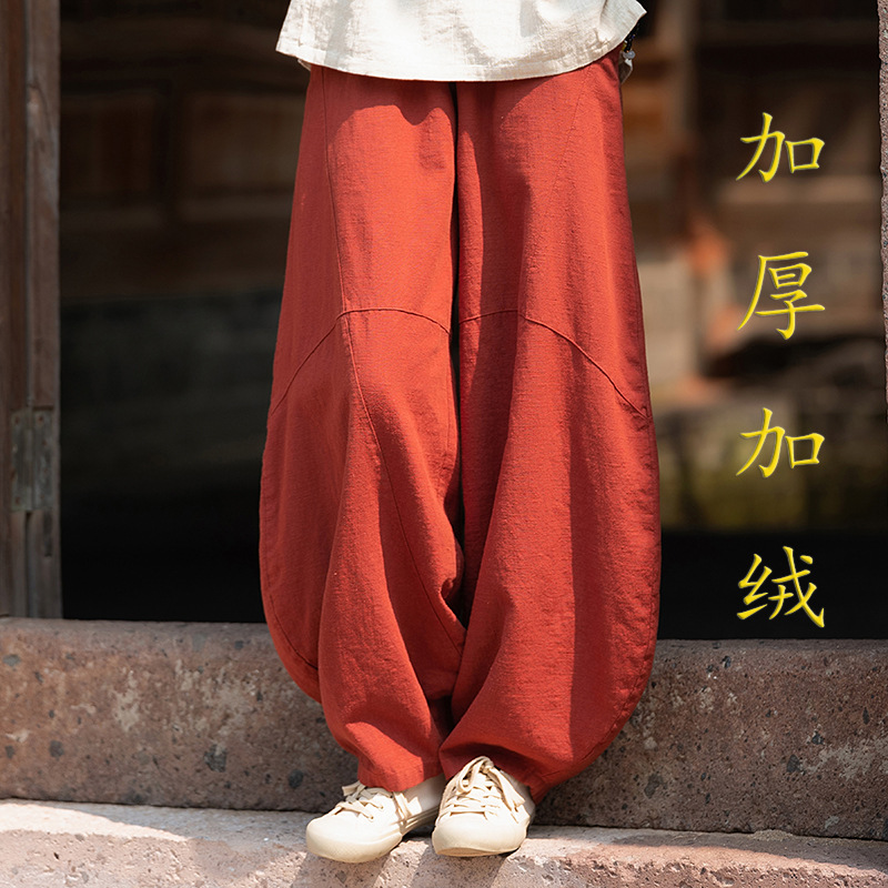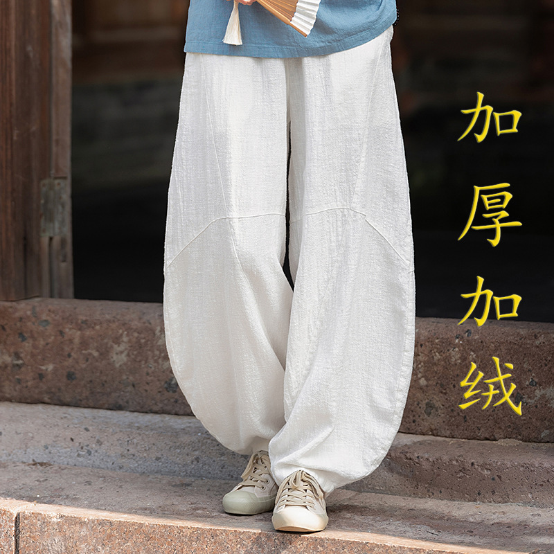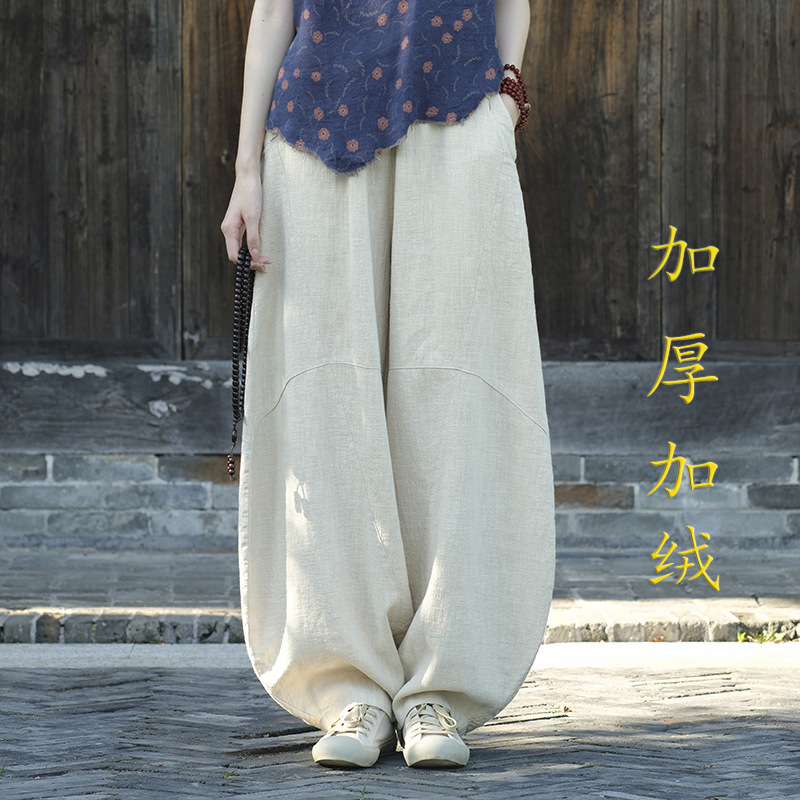 Старые свободные повседневные брюки Ramie, жареные песочные брюки, женские шаровары 25, литературные брюки из хлопка и льна в стиле ретро для медитации, медитации, тай-чи