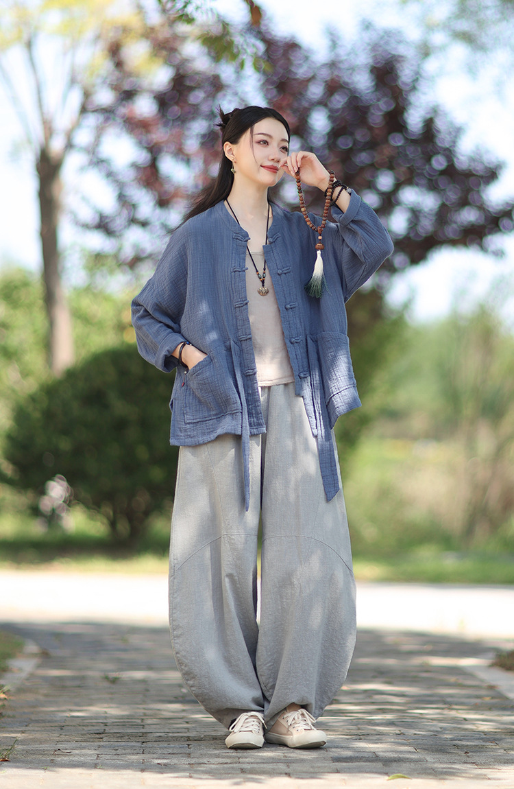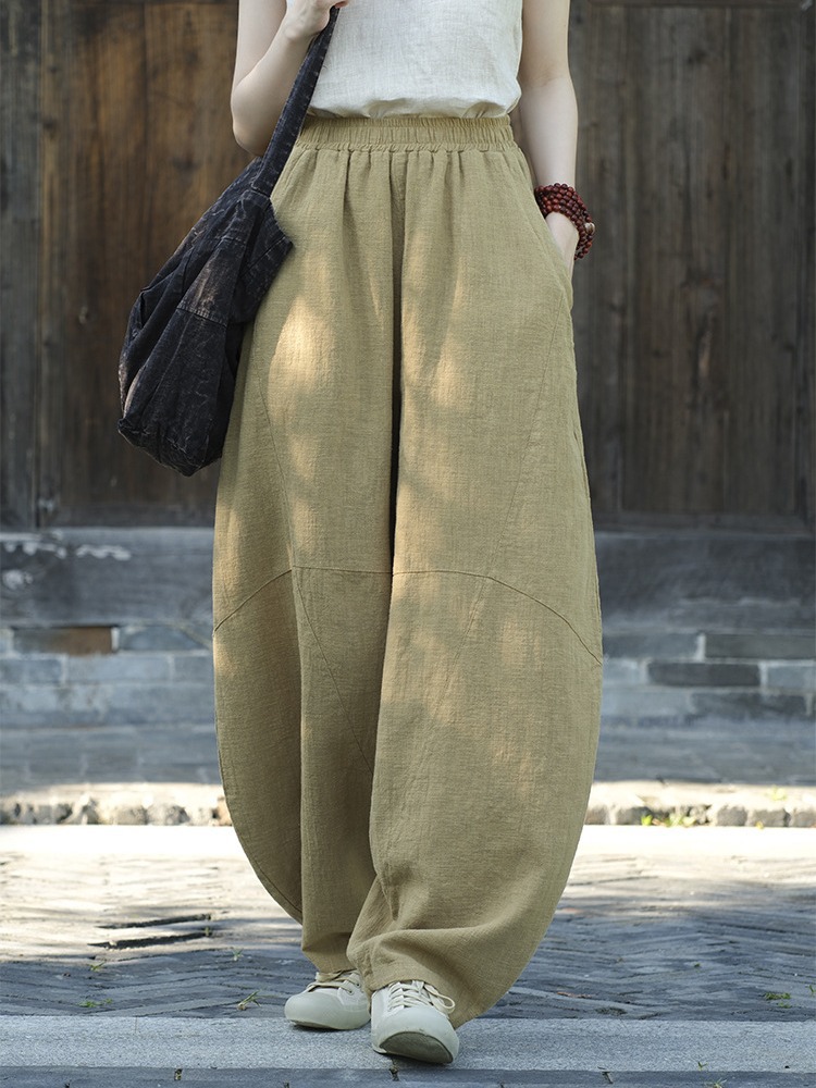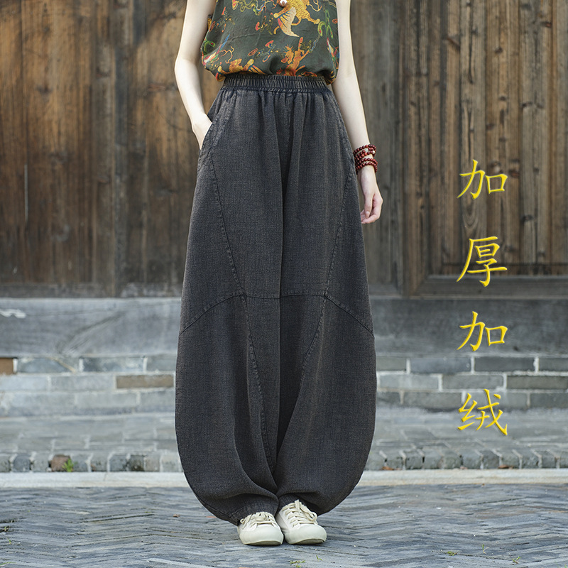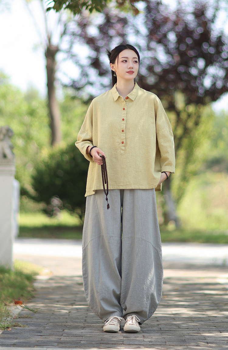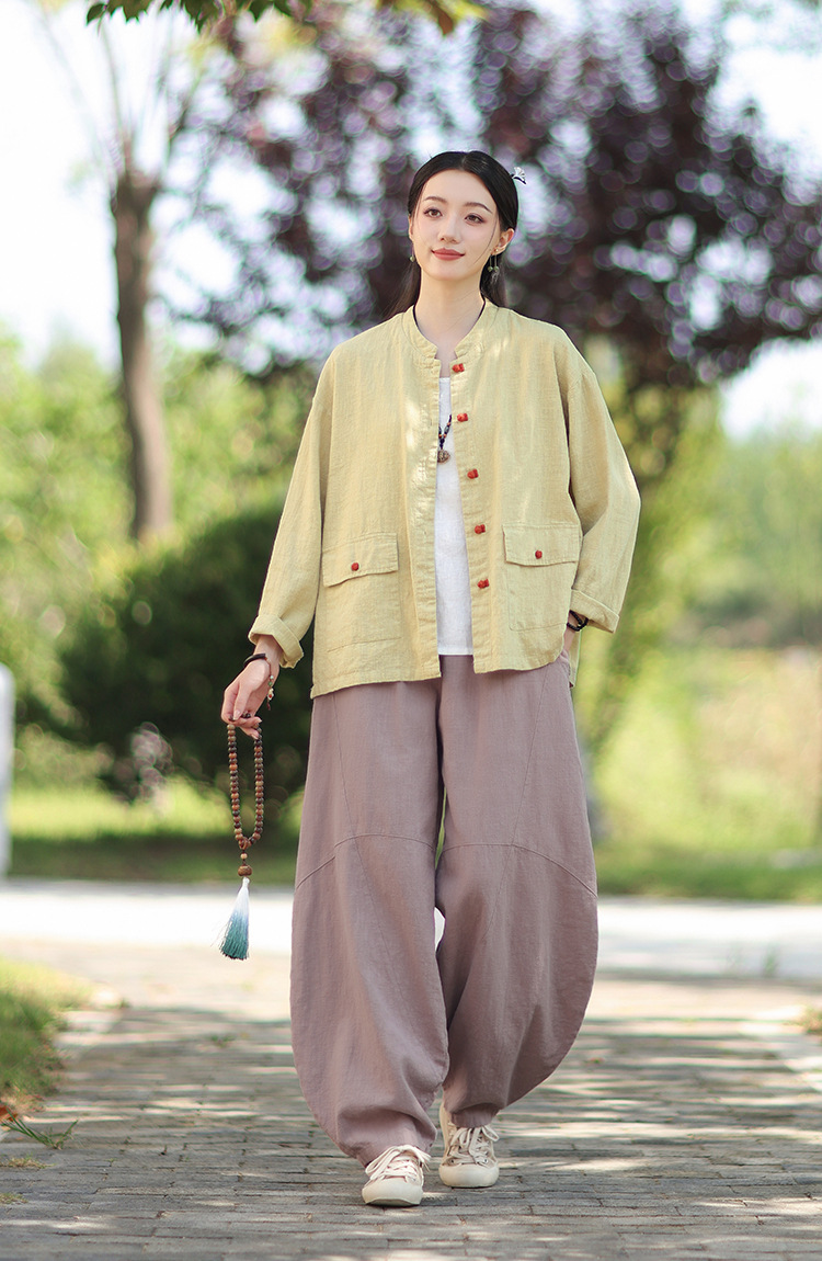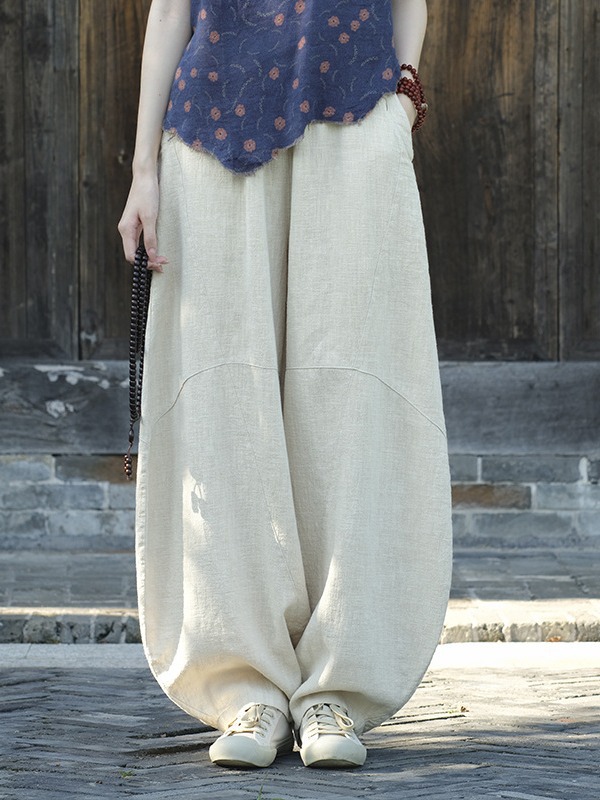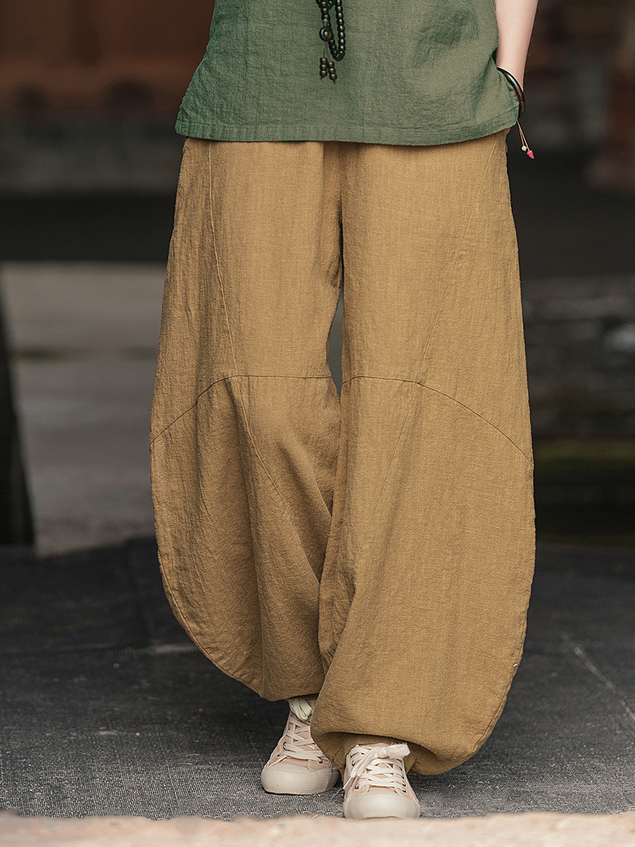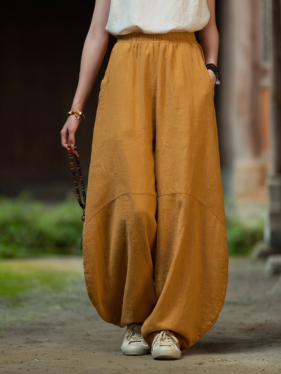 Старые свободные повседневные брюки Ramie, жареные песочные брюки, женские шаровары 25, литературные брюки из хлопка и льна в стиле ретро для медитации, медитации, тай-чи