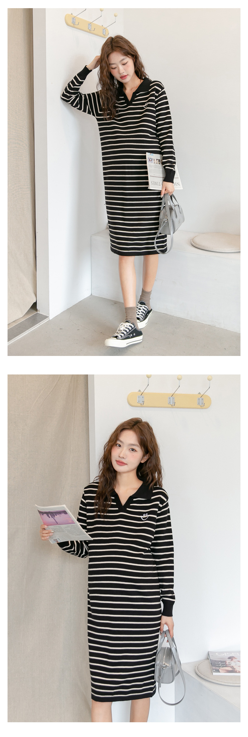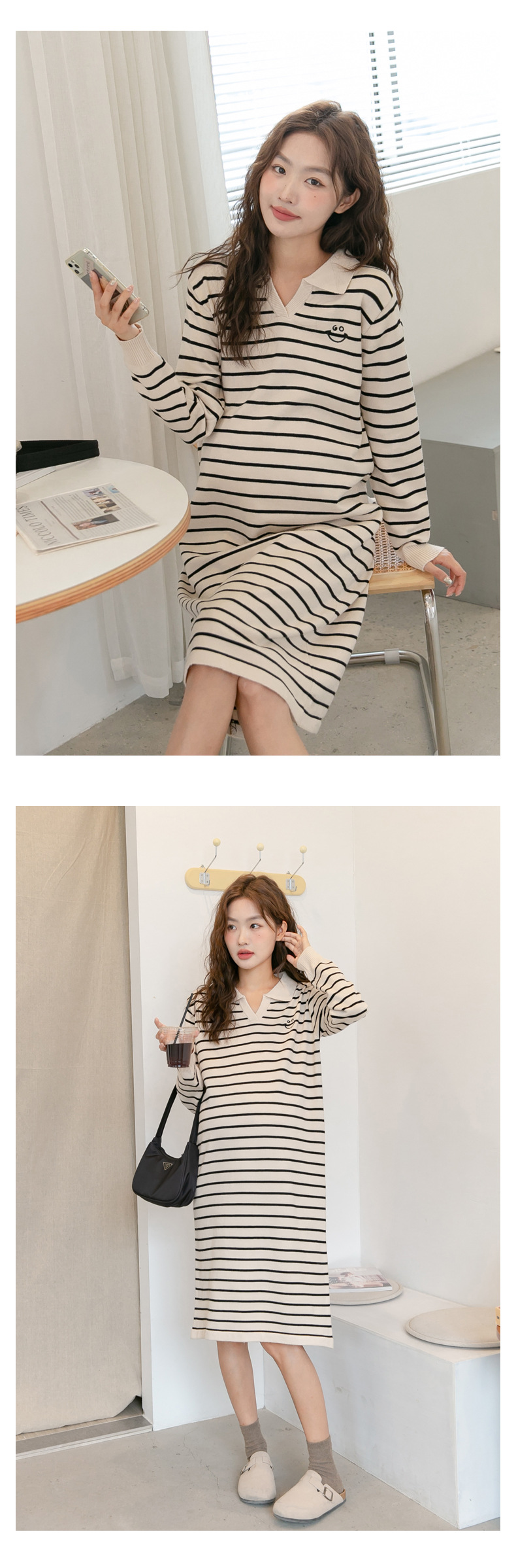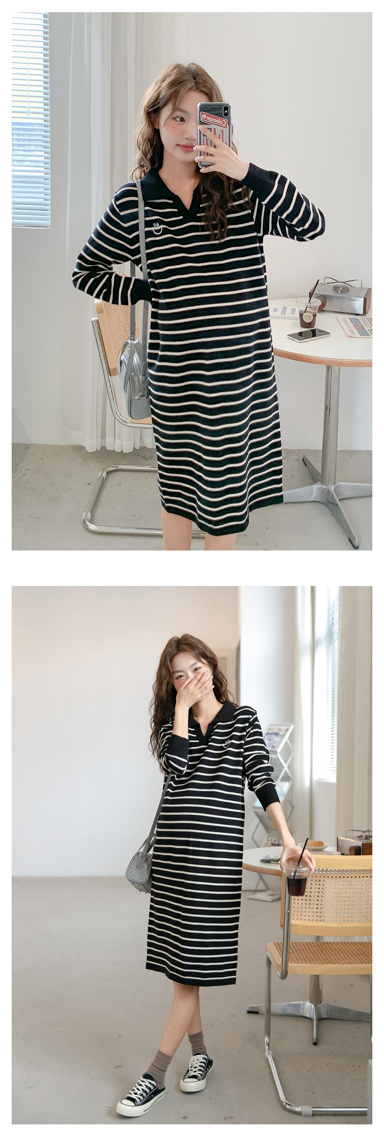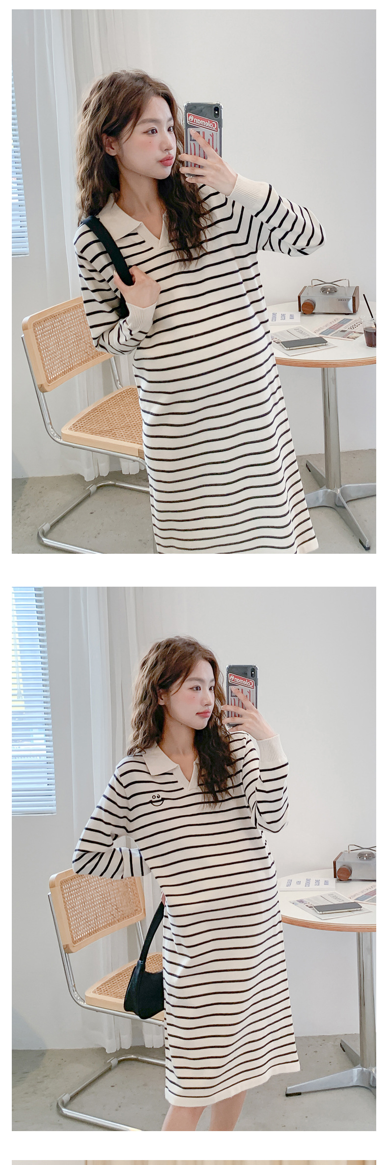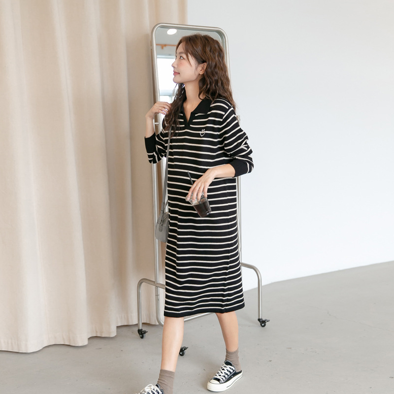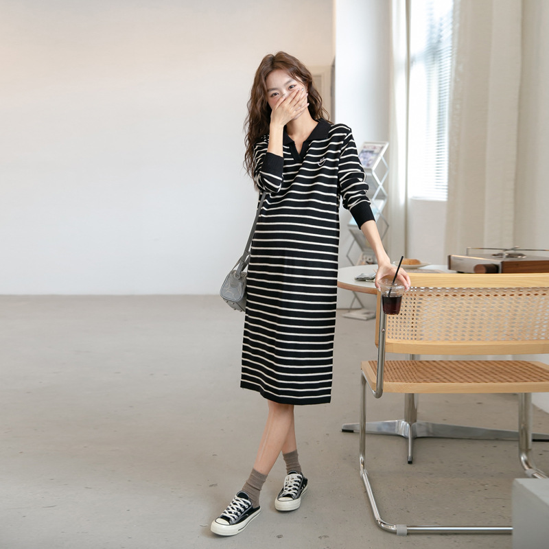 Осенне-зимнее трикотажное платье-свитер для беременных, платье с воротником поло с лацканами, эластичное приталенное модное приталенное платье для мам средней длины