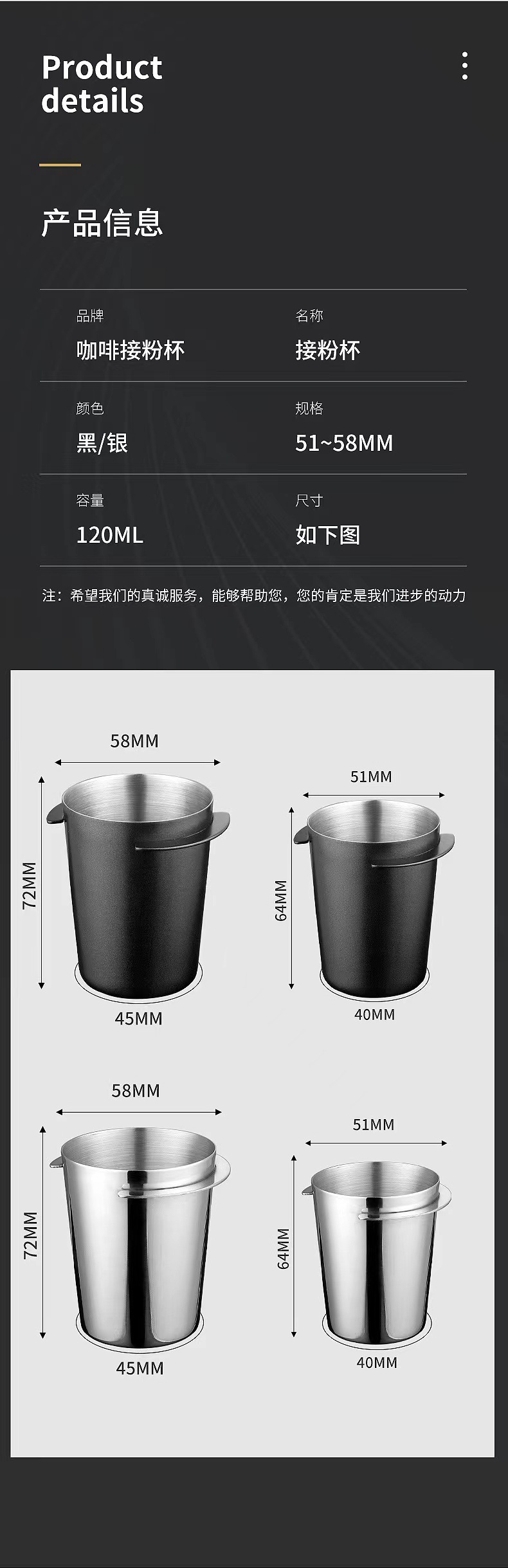 Чашка для порошка из нержавеющей стали 51; 58 мм нержавеющая сталь порошок Кубок; 51/53 мм черная высокотемпературная краска; 58 мм черная высокотемпературная краска; Чашка для порошка из нержавеющей стали диаметром 53 мм.
