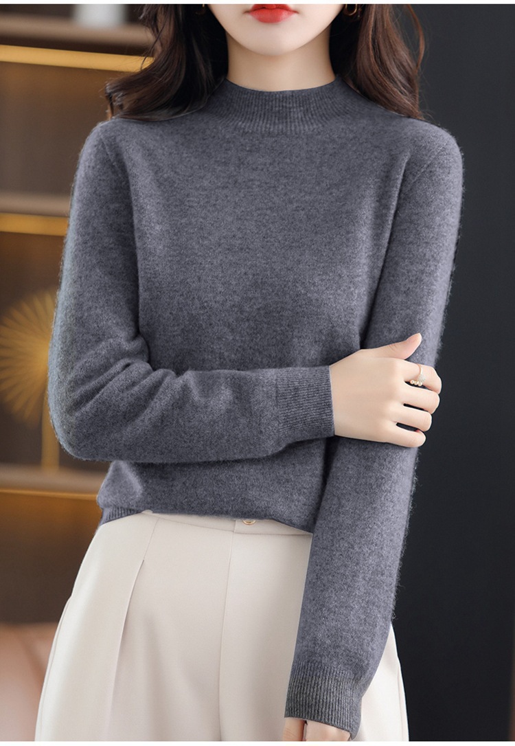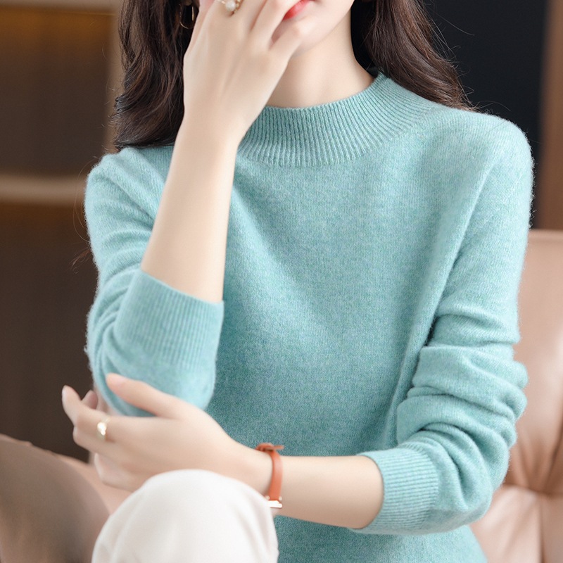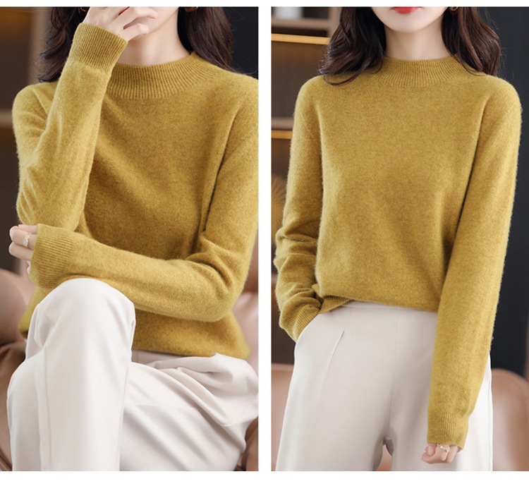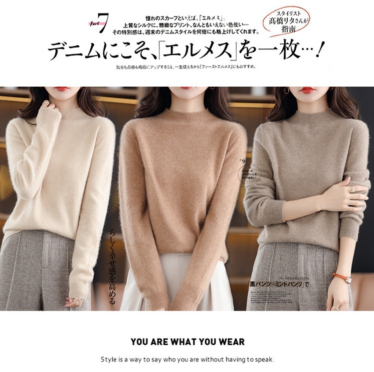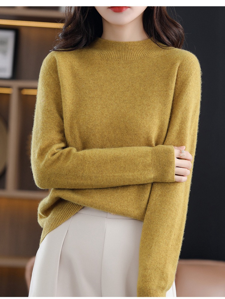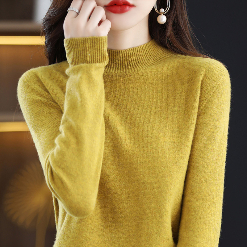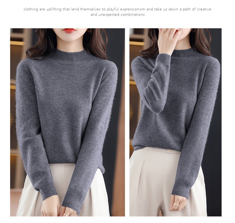 Осенний и зимний новый свитер с половиной водолазкой женский свободный пуловер с нижней нитью трикотаж с длинной линией одежды с длинными рукавами 100% шерстяной свитер